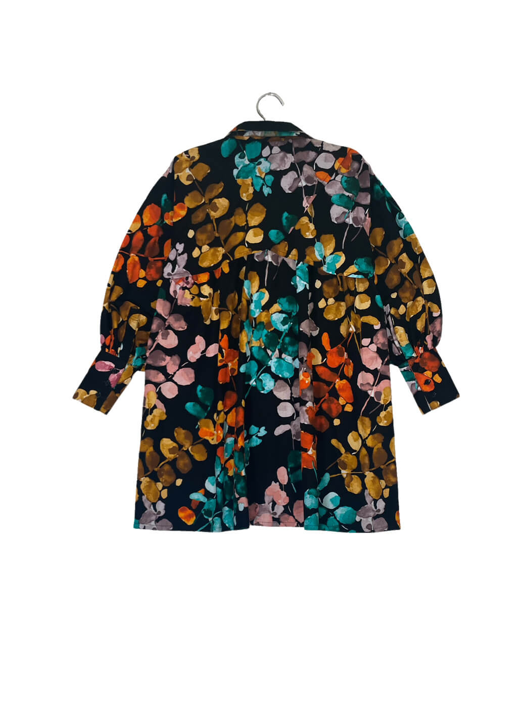見た目は一見普通のシャツだけど、細部にこだわりが散りばめられた、カジュアルにもフォーマルにも対応できる優秀トップス。フロントは比翼仕立てでボタンの見えないスッキリデザイン。バルーンスリーブは長めのカフスとの組み合わせで甘すぎない印象に。首元には長さの異なる襟を二重で施し、さりげないアクセントに。バックは交差するヨークからギャザーの入ったAラインのシルエットで、前はスッキリ、後ろはボリューミーなデザインが、一枚でこなれ感を演出。スキニーパンツにもワイドパンツにも相性のいいシャツは、もちろん羽織りものとしても活躍する、一枚あれば年中重宝する優秀アイテム。