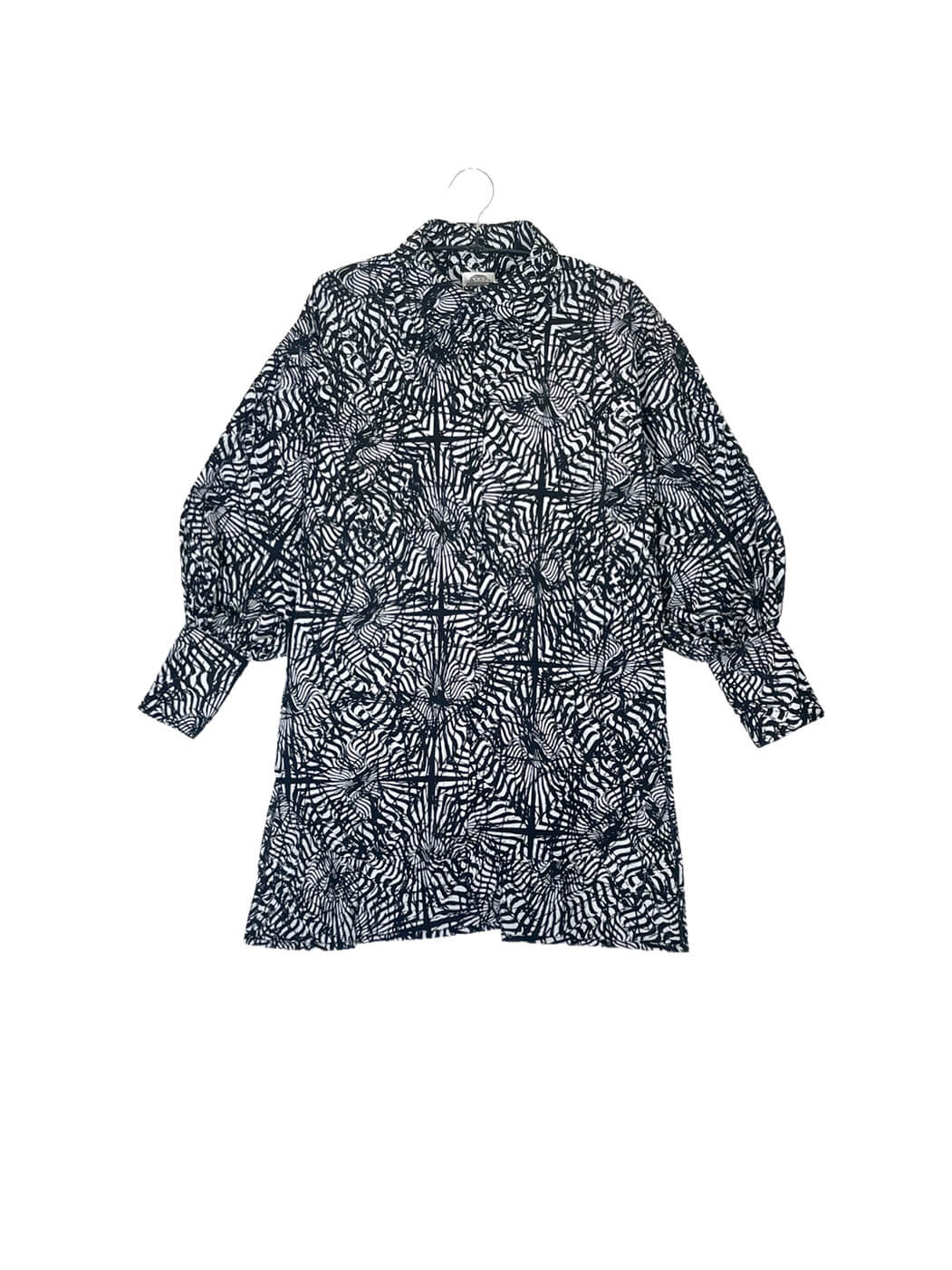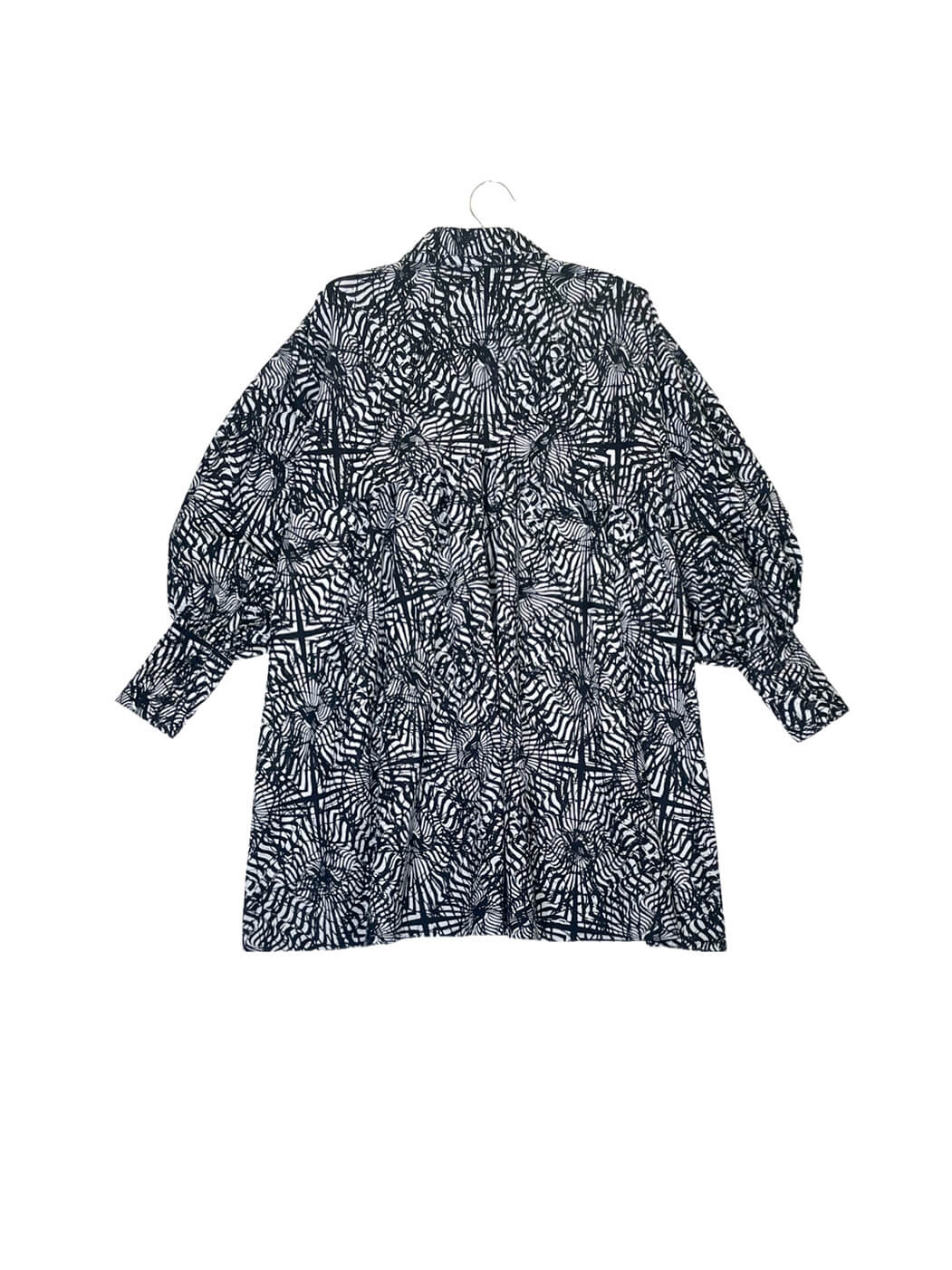 見た目は一見普通のシャツだけど、細部にこだわりが散りばめられた、カジュアルにもフォーマルにも対応できる優秀トップス。フロントは比翼仕立てでボタンの見えないスッキリデザイン。バルーンスリーブは長めのカフスとの組み合わせで甘すぎない印象に。首元には長さの異なる襟を二重で施し、さりげないアクセントに。バックは交差するヨークからギャザーの入ったAラインのシルエットで、前はスッキリ、後ろはボリューミーなデザインが、一枚でこなれ感を演出。スキニーパンツにもワイドパンツにも相性のいいシャツは、もちろん羽織りものとしても活躍する、一枚あれば年中重宝する優秀アイテム。