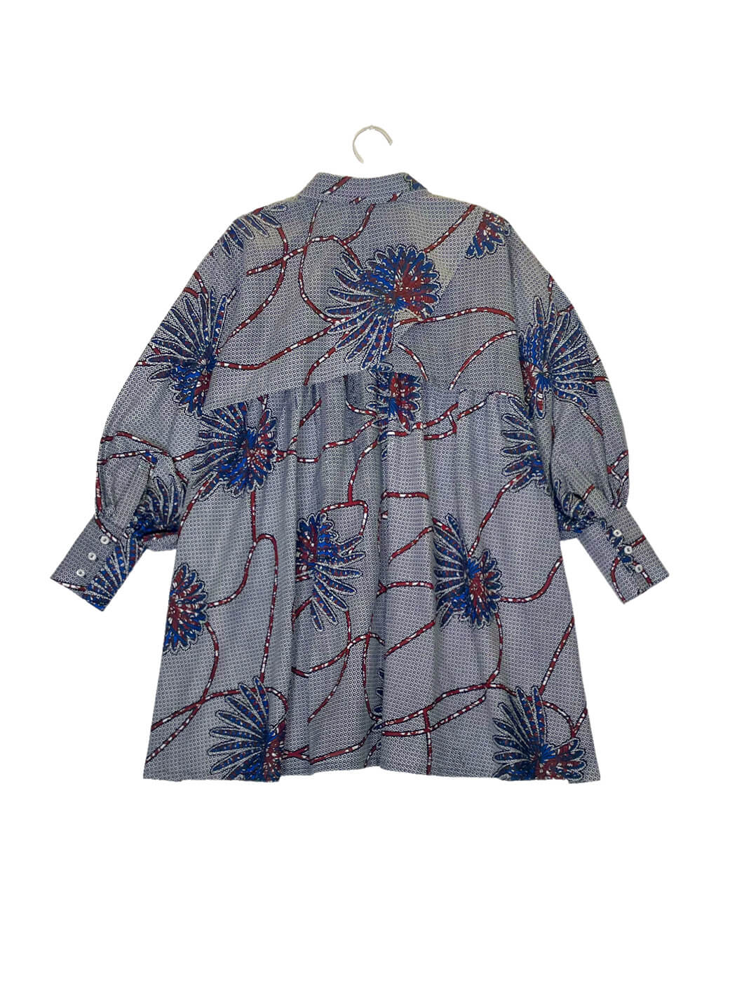 見た目は一見普通のシャツだけど、細部にこだわりが散りばめられた、カジュアルにもフォーマルにも対応できる優秀トップス。フロントは比翼仕立てでボタンの見えないスッキリデザイン。バルーンスリーブは長めのカフスとの組み合わせで甘すぎない印象に。首元には長さの異なる襟を二重で施し、さりげないアクセントに。バックは交差するヨークからギャザーの入ったAラインのシルエットで、前はスッキリ、後ろはボリューミーなデザインが、一枚でこなれ感を演出。スキニーパンツにもワイドパンツにも相性のいいシャツは、もちろん羽織りものとしても活躍する、一枚あれば年中重宝する優秀アイテム。