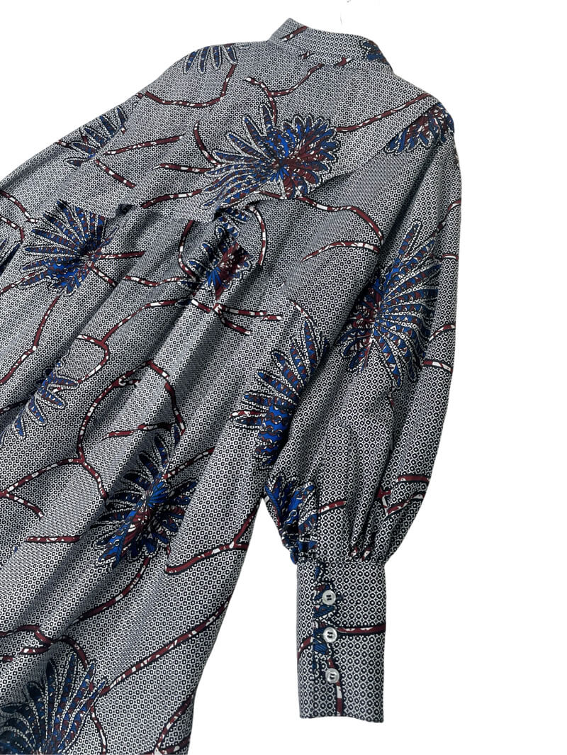 見た目は一見普通のシャツだけど、細部にこだわりが散りばめられた、カジュアルにもフォーマルにも対応できる優秀トップス。フロントは比翼仕立てでボタンの見えないスッキリデザイン。バルーンスリーブは長めのカフスとの組み合わせで甘すぎない印象に。首元には長さの異なる襟を二重で施し、さりげないアクセントに。バックは交差するヨークからギャザーの入ったAラインのシルエットで、前はスッキリ、後ろはボリューミーなデザインが、一枚でこなれ感を演出。スキニーパンツにもワイドパンツにも相性のいいシャツは、もちろん羽織りものとしても活躍する、一枚あれば年中重宝する優秀アイテム。