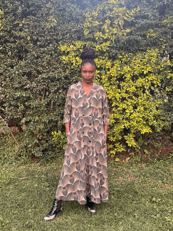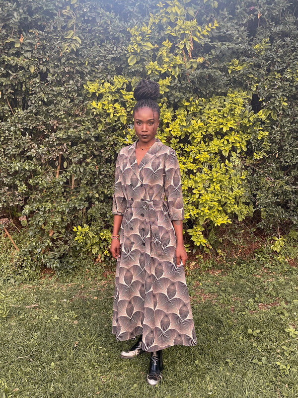 今年の秋の新作ワンピースは、ダブルボタンとショールカラーがシックでクラシックな、マキシ丈のワンピース。前にスリットの入った袖口は、動きに合わせて手首が見え隠れしエレガントな表情を演出。袖口を折り返して七分丈にするとフォーマルな印象に。ゆるAラインのワンピースとしてそのまま着用するもよし、付属のDカンベルトを使用してウエストマークしスッキリと着こなすのも◎。まるでコートのようなワンピースは、もちろん羽織りとしても活躍すること間違いなし。
