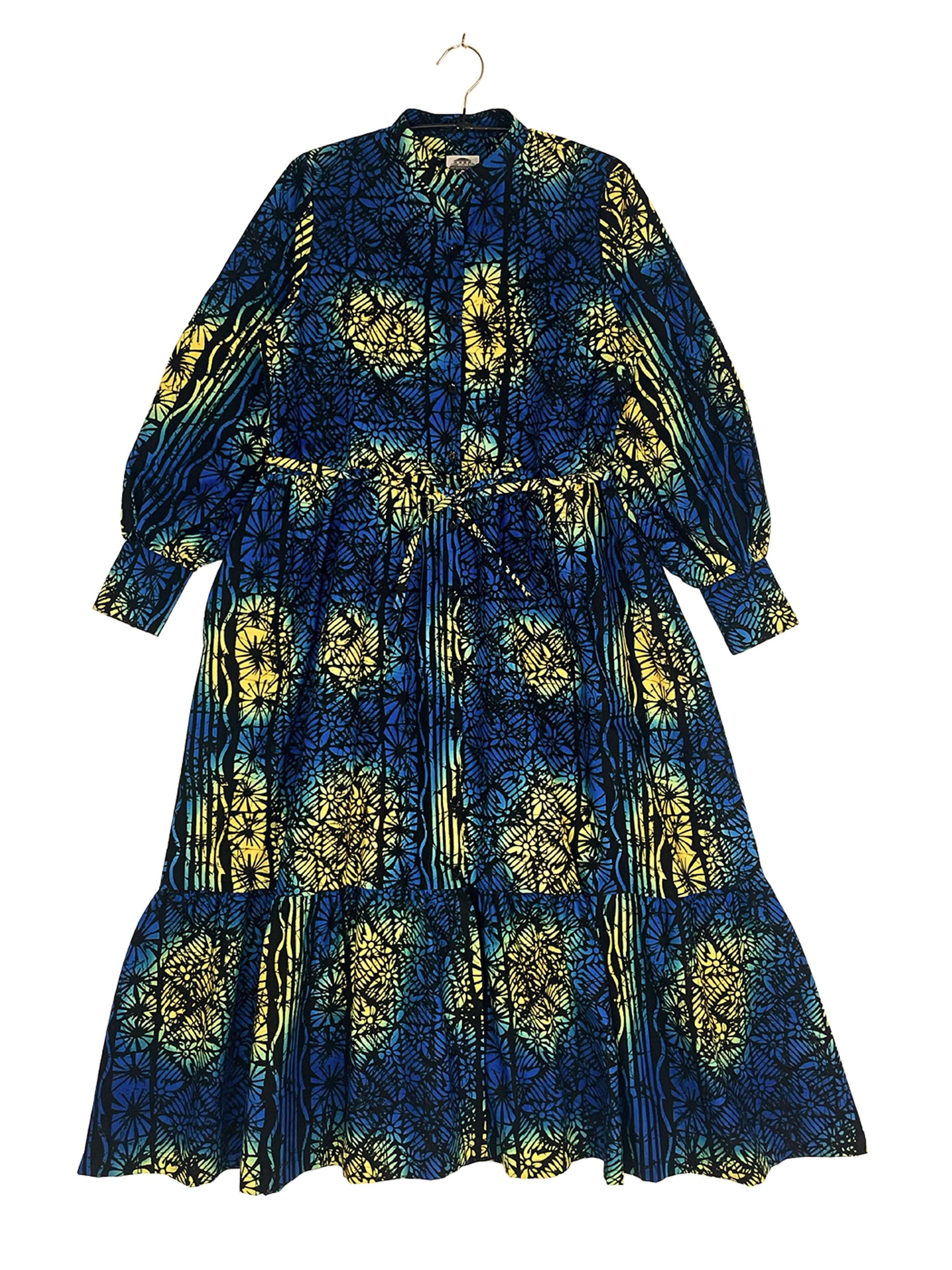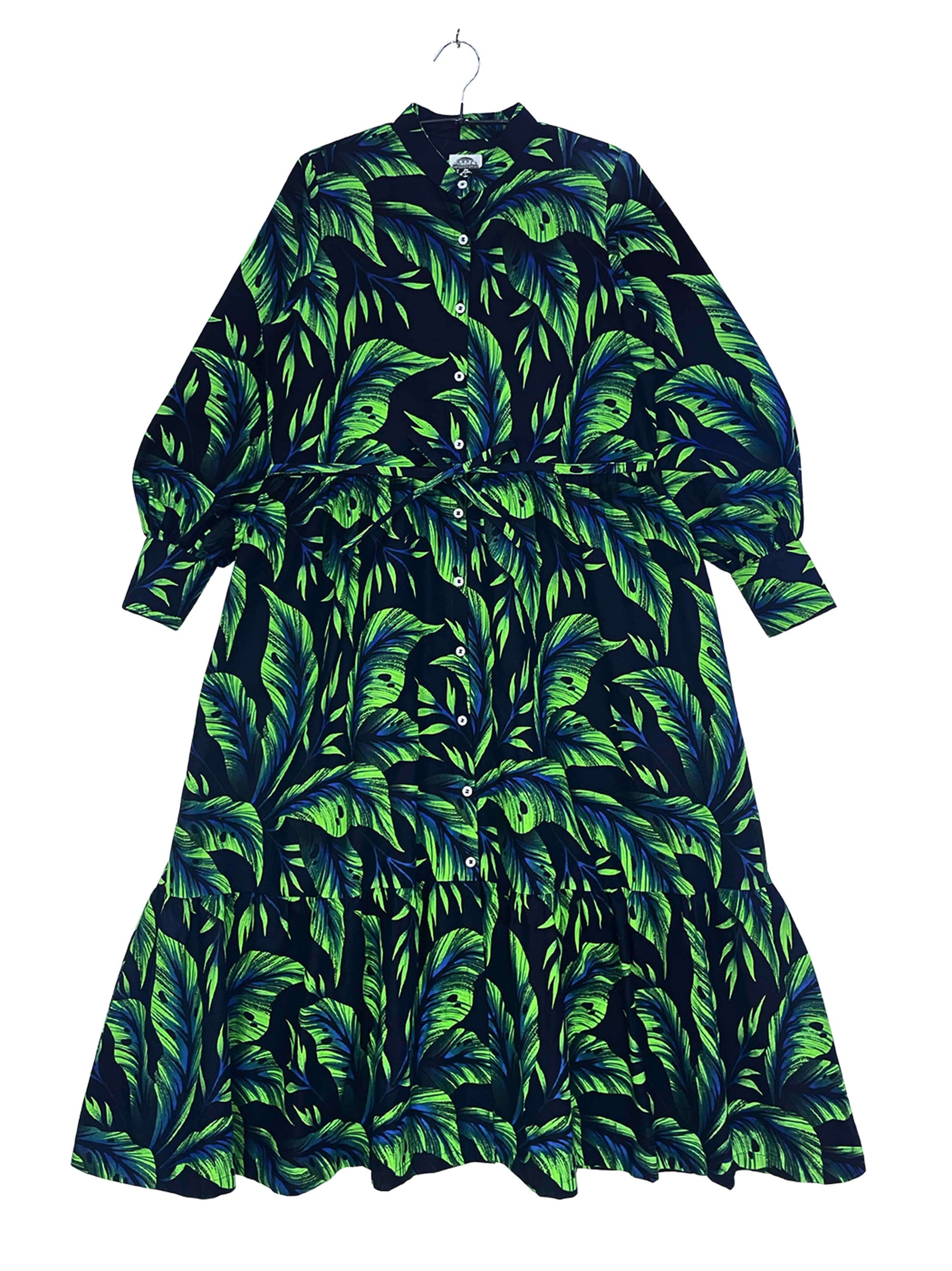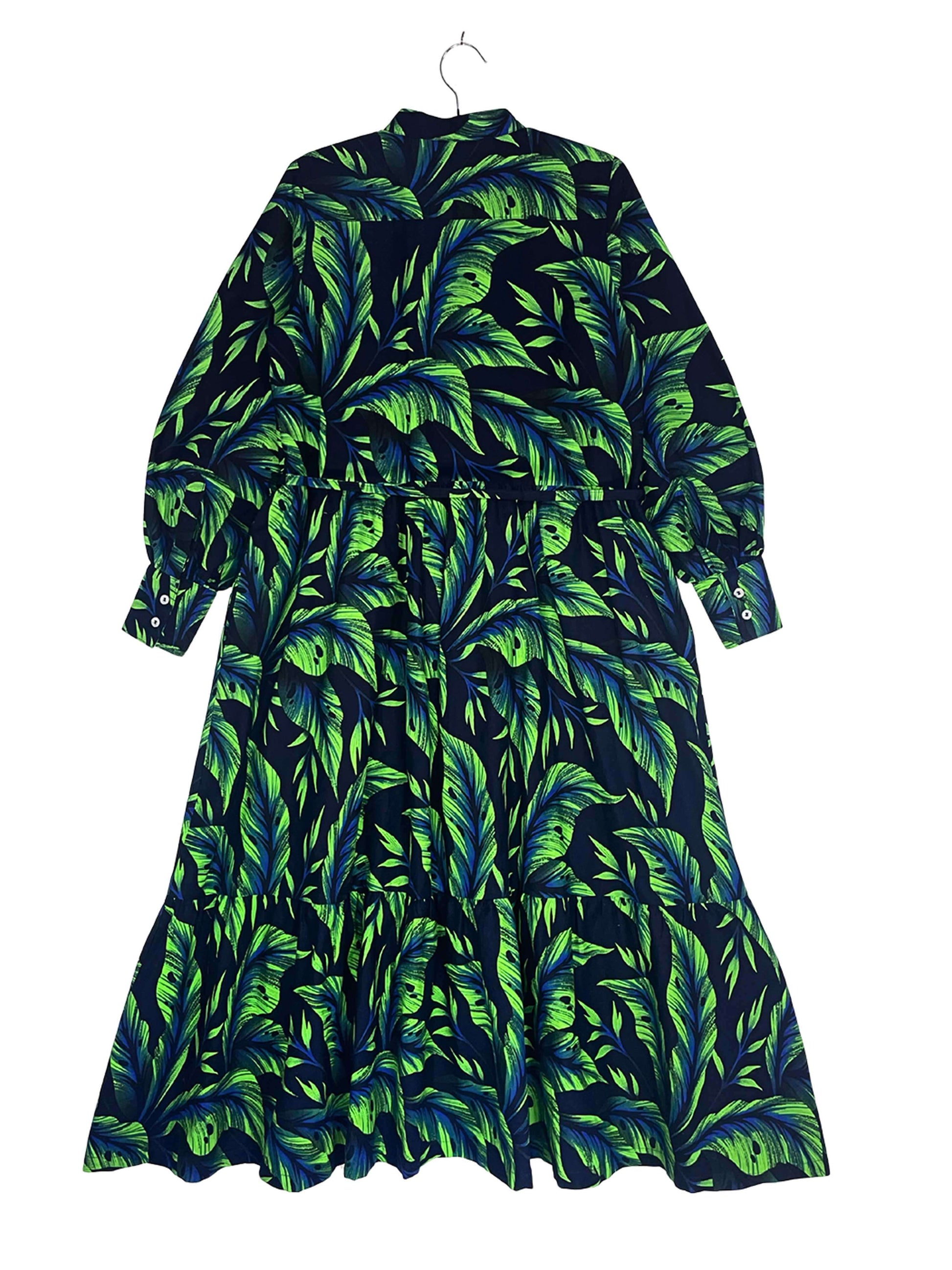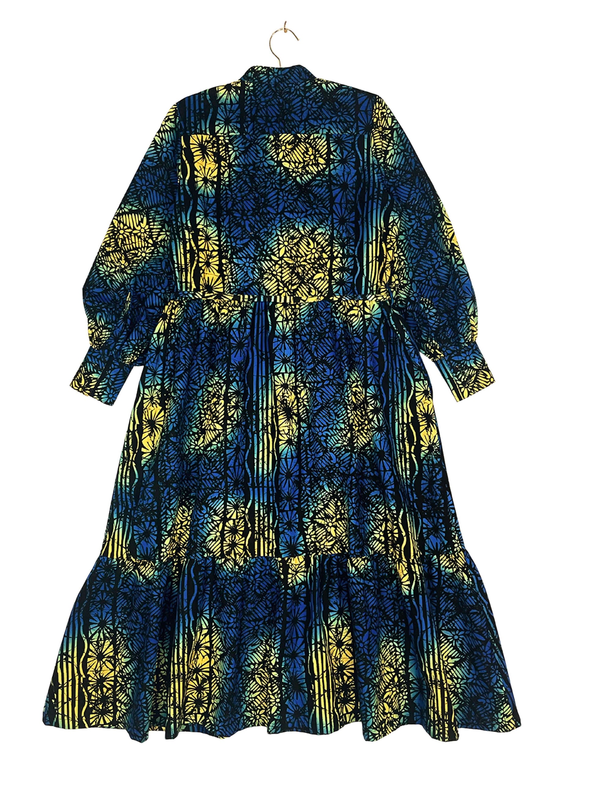 程よいボリュームのバルーンスリーブと、二段ティアード仕様のスカートが、全体に自然な立体感を与えます。