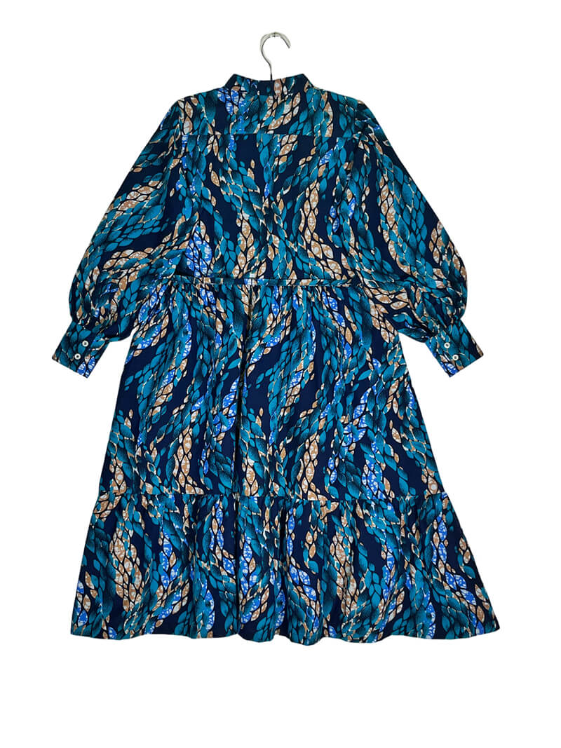 ワンピースとしても、ロングカーディガンとしても活躍するシャツワンピも、立ち襟とバルーン袖で個性的に。3レイヤーの裾に向かって広がる華やかなティアードのシルエットは、取り外し可能のリボンでウェストマークしてスッキリとした着こなしにも。両サイドポケット付き。