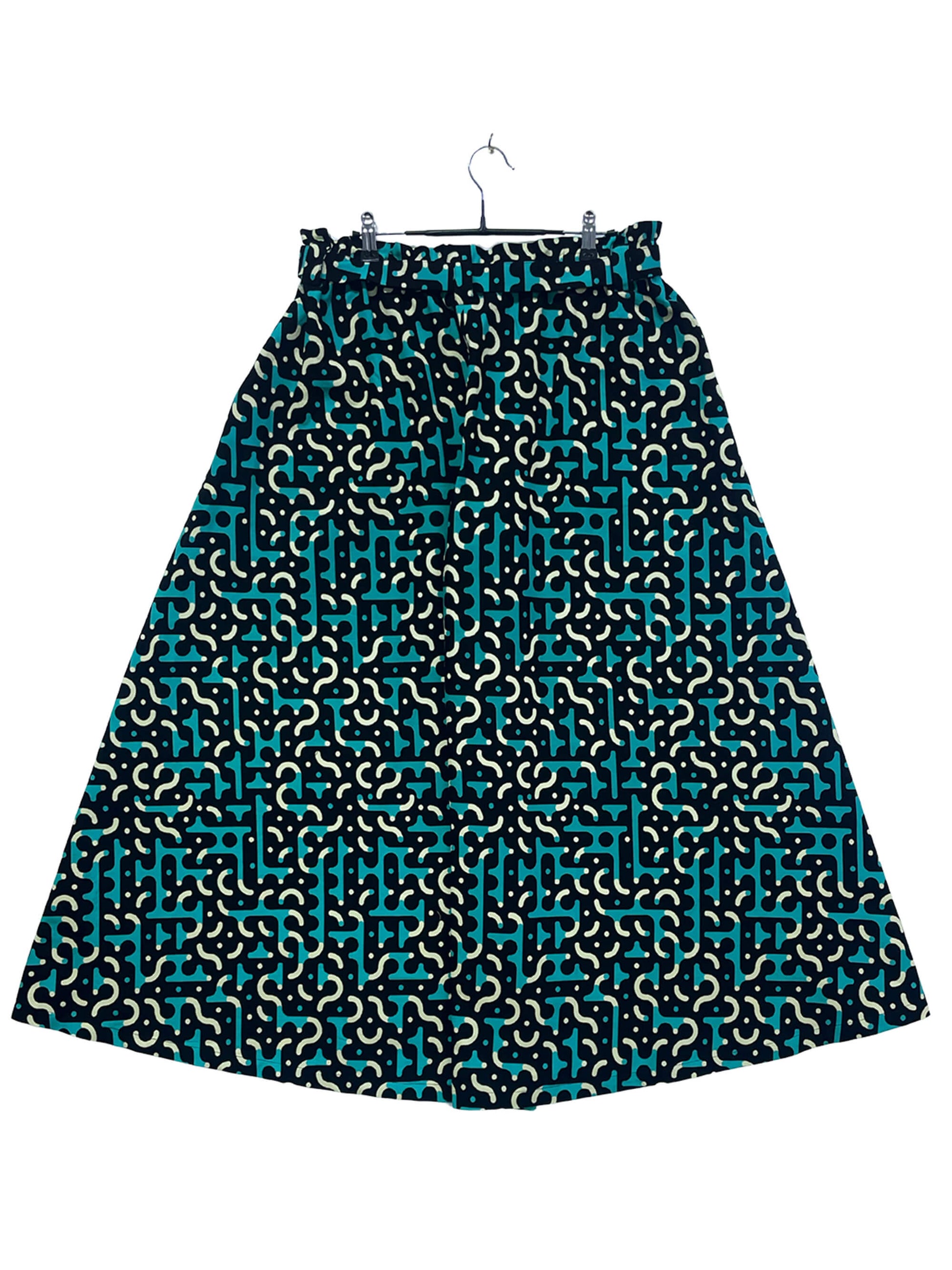 ハイウエストデザインで、ショート丈のトップスとのバランスも美しく、トップスをインしてすっきりとした着こなしも可能。ウエストはゴム仕様に加え、リボンで微調整ができるため、幅広い体型に対応します。両サイドには便利なポケット付きで、機能性も兼ね備えたデザイン。日常のカジュアルスタイルからお出かけまで、軽やかで女性らしいシルエットを楽しめる、定番人気の一着です。