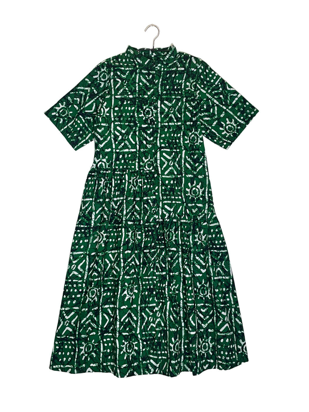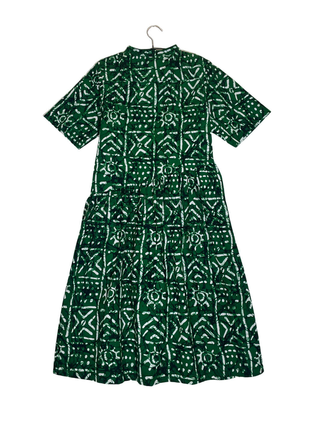 Our most popular item Shirt Dress's summer version has just arrived! With the trademark stand collar remaining, the I-line top gives it a skinnier silhouette, and the gathered skirt part has just the right amount of volume. The switching part of tops and bottoms are asymmetrically placed; the right side is below the waist, and the left is above the knee, giving it a unique look. Half-length sleeves are also great for protection from the sun. It can be worn in 2 ways, as a comfortable voluminous dress, and also as a cardigan.