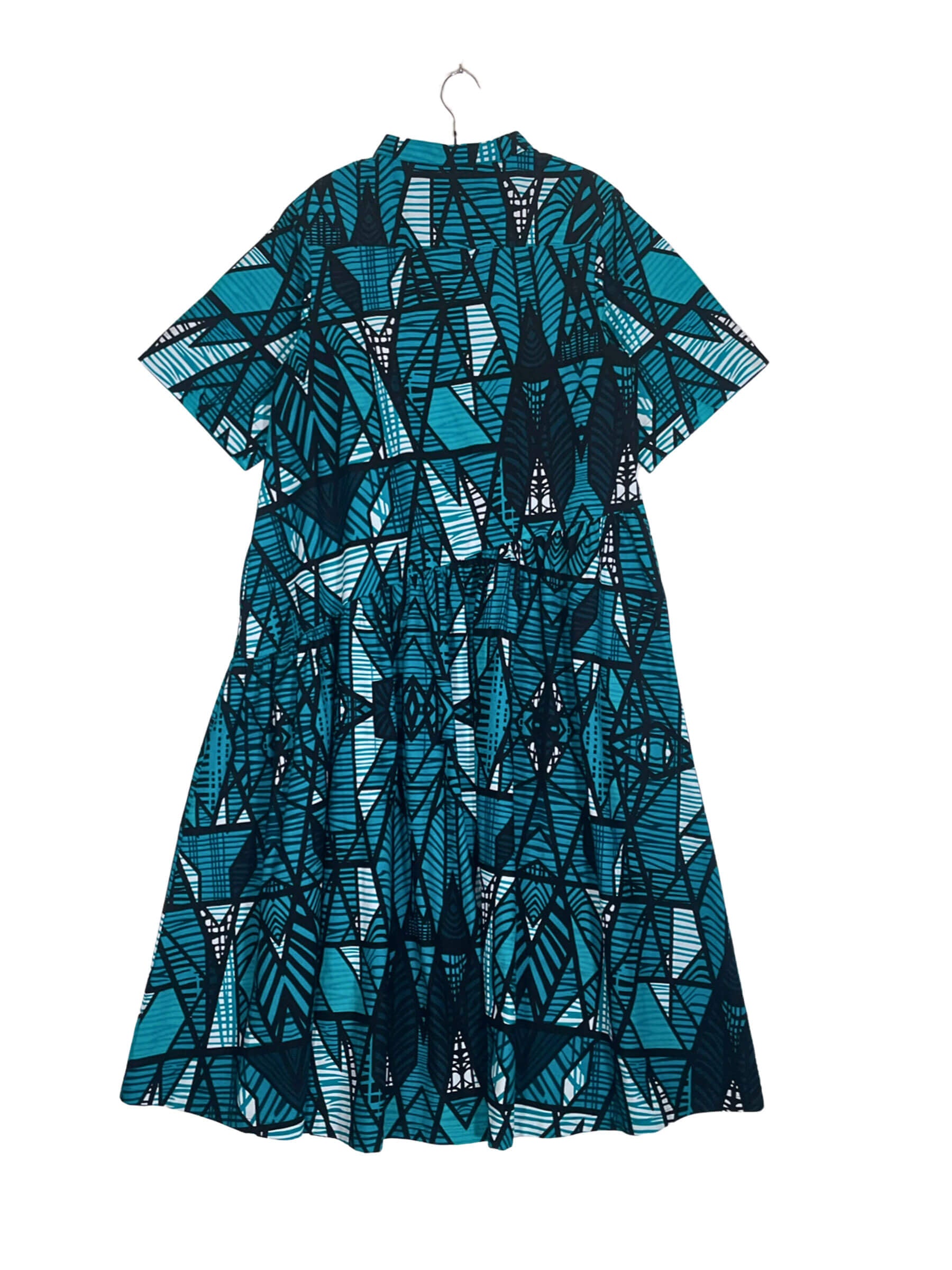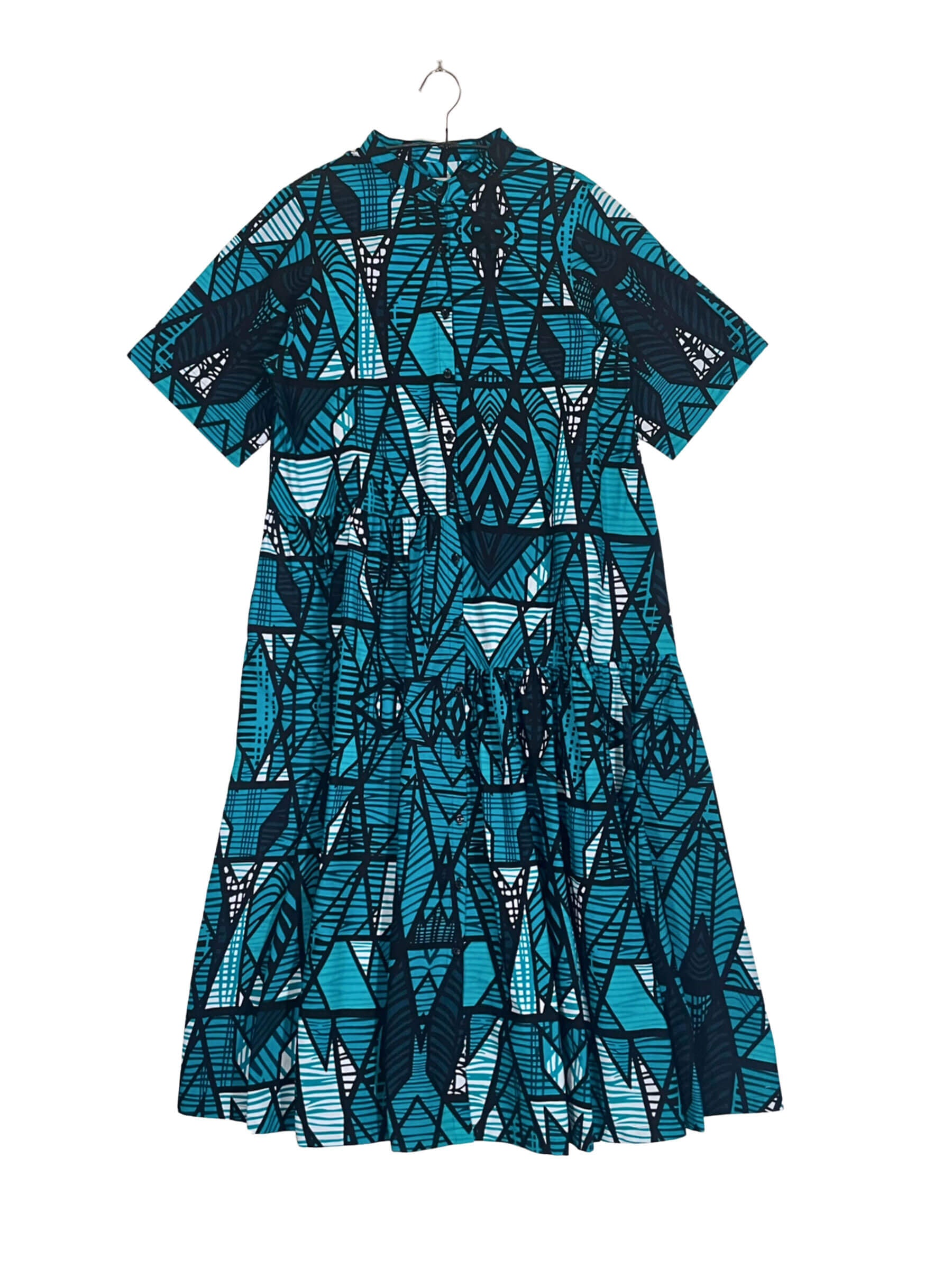 Our most popular item Shirt Dress's summer version has just arrived! With the trademark stand collar remaining, the I-line top gives it a skinnier silhouette, and the gathered skirt part has just the right amount of volume. The switching part of tops and bottoms are asymmetrically placed; the right side is below the waist, and the left is above the knee, giving it a unique look. Half-length sleeves are also great for protection from the sun. It can be worn in 2 ways, as a comfortable voluminous dress, and also as a cardigan.