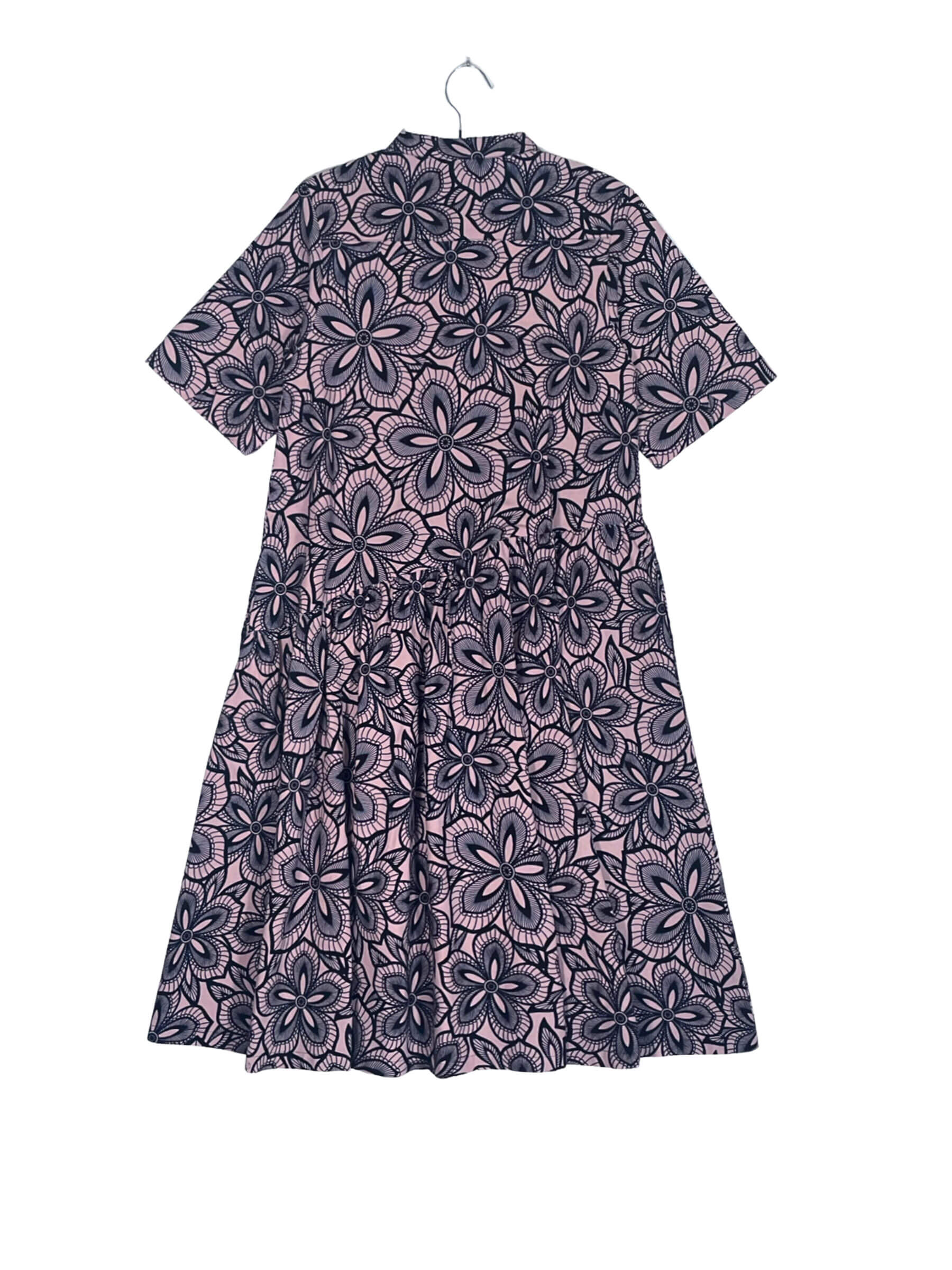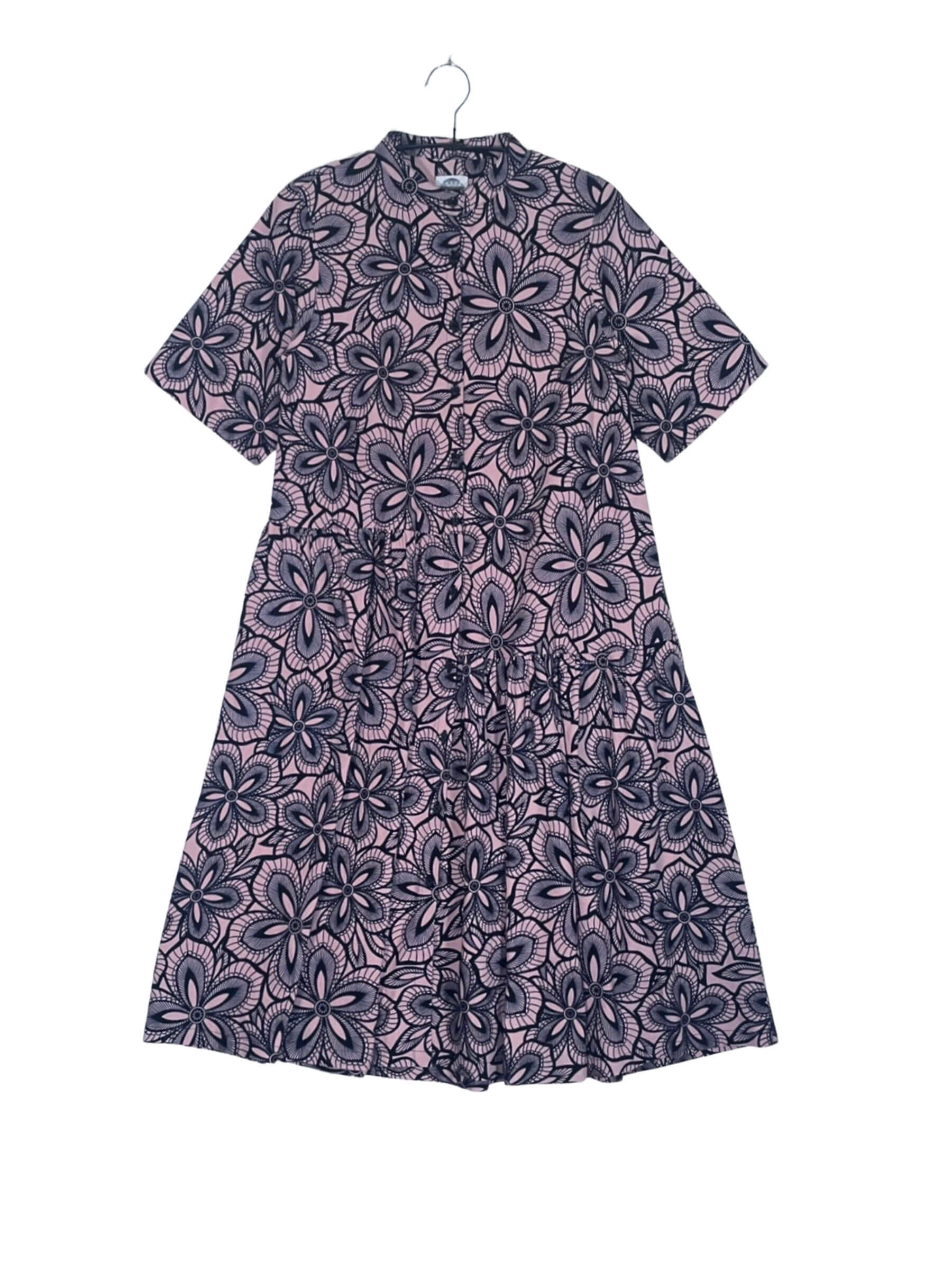 Our most popular item Shirt Dress's summer version has just arrived! With the trademark stand collar remaining, the I-line top gives it a skinnier silhouette, and the gathered skirt part has just the right amount of volume. The switching part of tops and bottoms are asymmetrically placed; the right side is below the waist, and the left is above the knee, giving it a unique look. Half-length sleeves are also great for protection from the sun. It can be worn in 2 ways, as a comfortable voluminous dress, and also as a cardigan.