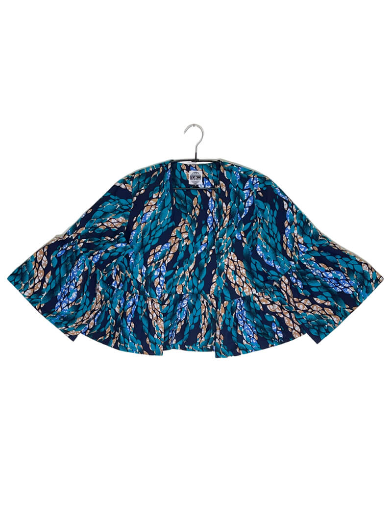 This cropped 3/4 sleeve jacket can accent your styling. The jacket's unique bell-shaped sleeves and ruffles at the hem give it a neat but also gorgeous look.