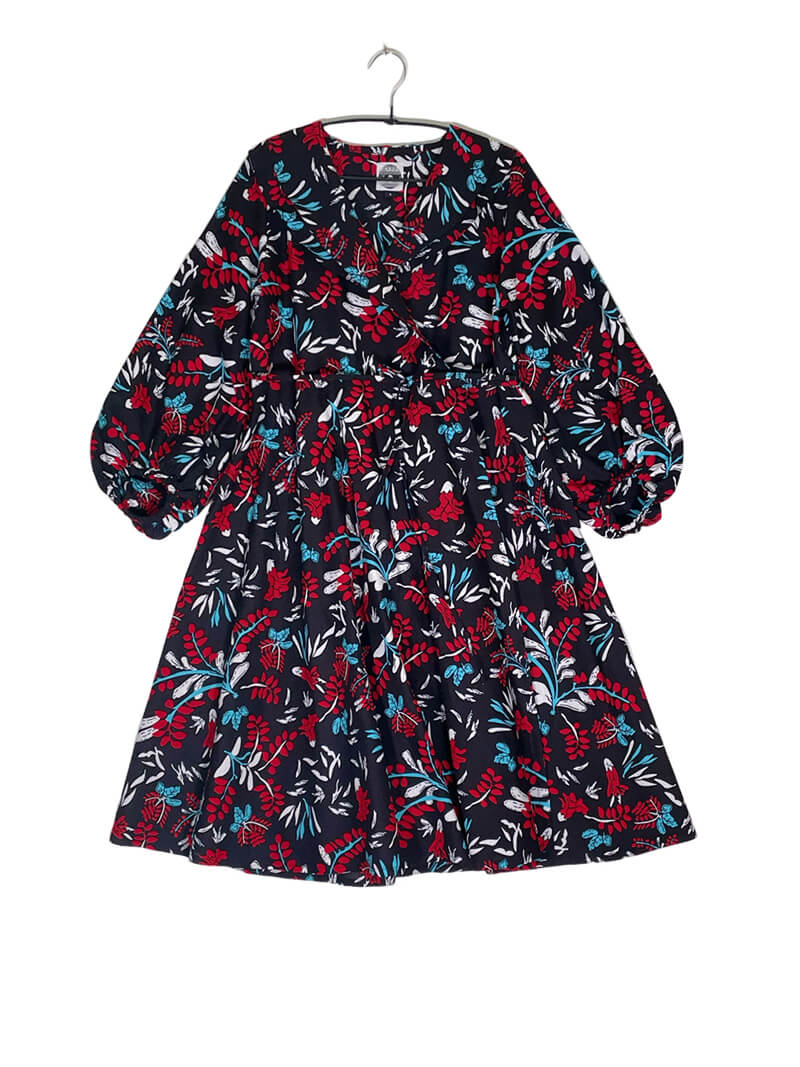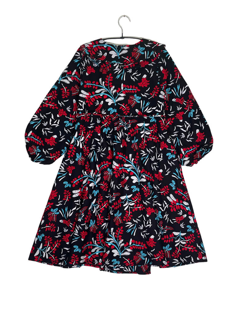 A dress with a beautifully swaying flared skirt and perfectly rounded bishop sleeves. Since the bottom is a wrap skirt, it is not only easy to put on and take off, but also the chest opening and waist can be adjusted freely. You can tie the ribbon at the waist as it is for a loose A-line look, or wrap it around to mark the waist for a neat look. The double-layered collar gives it a unique look from the back and side.