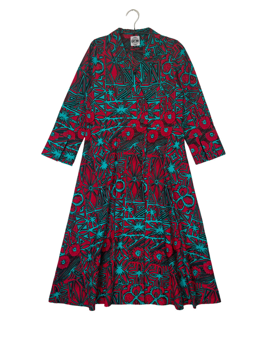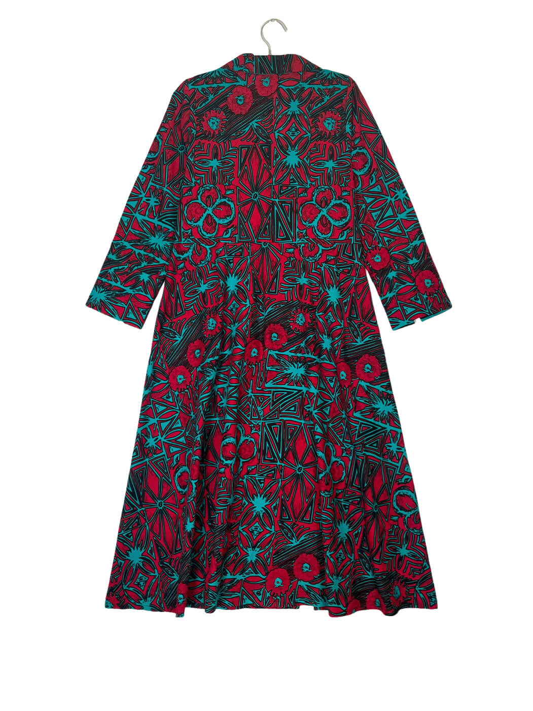 A maxi-length dress with a classic double-breasted front and shawl collar. The cuffs have a slit in the front, which allows the wrists to peek out as you move, creating an elegant look. Fold the cuffs back to make it 3/4 length for a more formal look. You can wear it as a loose A-line dress, or use the attached D-ring belt to mark your waist. This coat-like dress is useful as a light coat.
