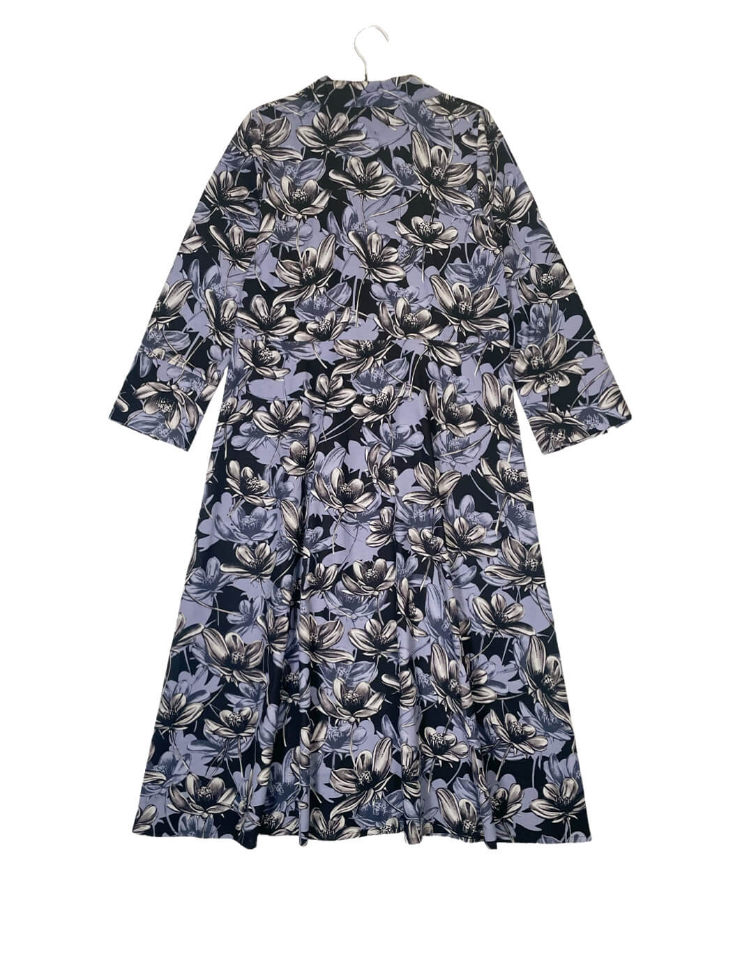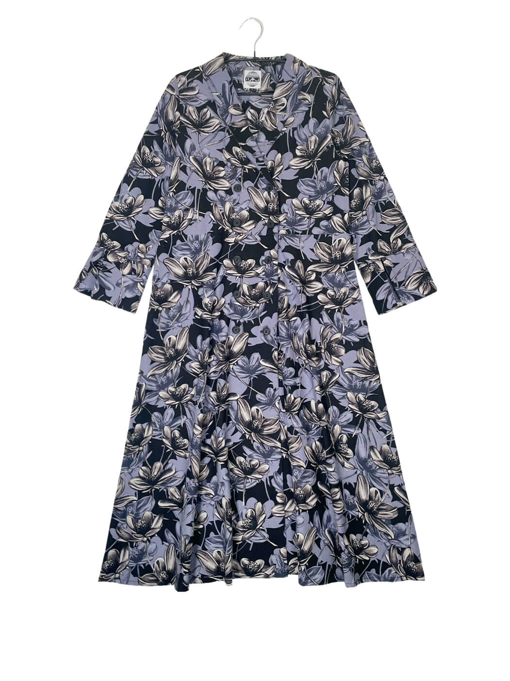 A maxi-length dress with a classic double-breasted front and shawl collar. The cuffs have a slit in the front, which allows the wrists to peek out as you move, creating an elegant look. Fold the cuffs back to make it 3/4 length for a more formal look. You can wear it as a loose A-line dress, or use the attached D-ring belt to mark your waist. This coat-like dress is useful as a light coat.