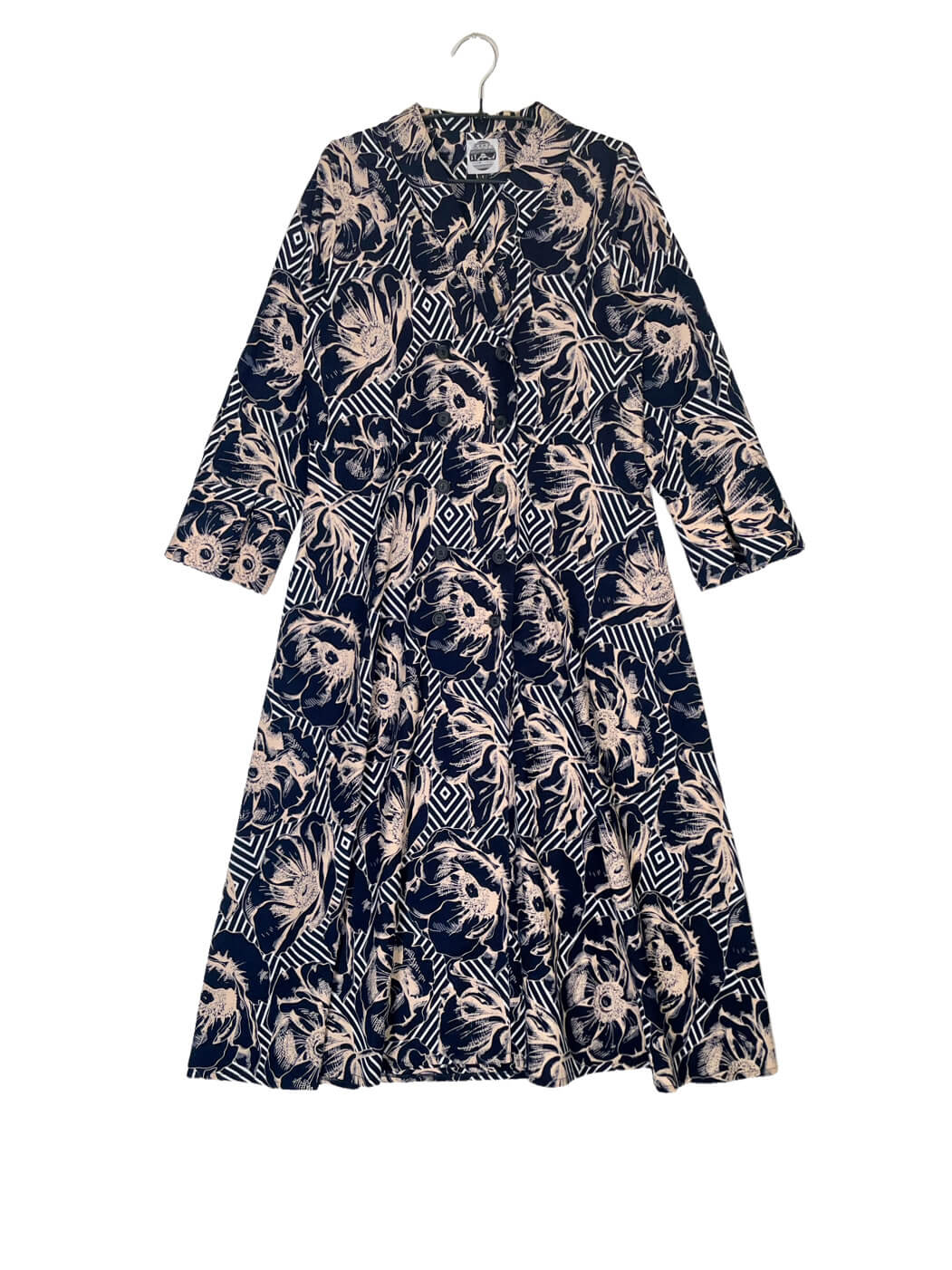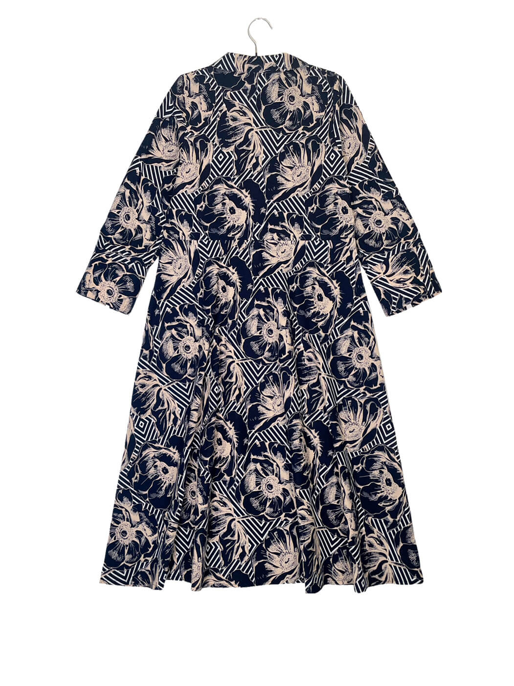 A maxi-length dress with a classic double-breasted front and shawl collar. The cuffs have a slit in the front, which allows the wrists to peek out as you move, creating an elegant look. Fold the cuffs back to make it 3/4 length for a more formal look. You can wear it as a loose A-line dress, or use the attached D-ring belt to mark your waist. This coat-like dress is useful as a light coat.