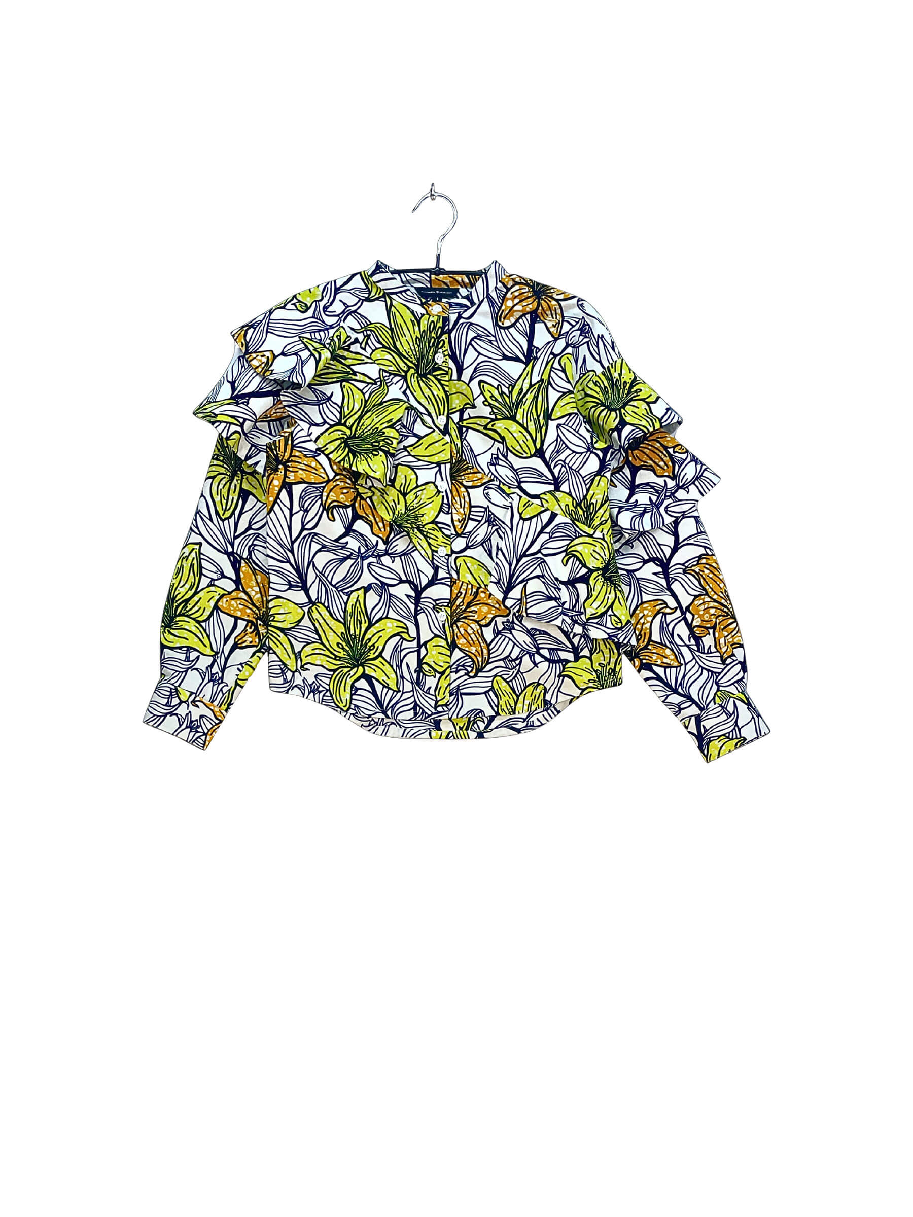 This year’s long-sleeve shirt is a standout piece with asymmetrical layered ruffles, making it a luxurious, statement-making top. Pair it with pants or denim for an effortlessly chic look, perfect for any occasion. Wear it open-front as a lightweight jacket for a fresh, stylish vibe. You’ll want it in every color—this is the top pick for fall and winter!
