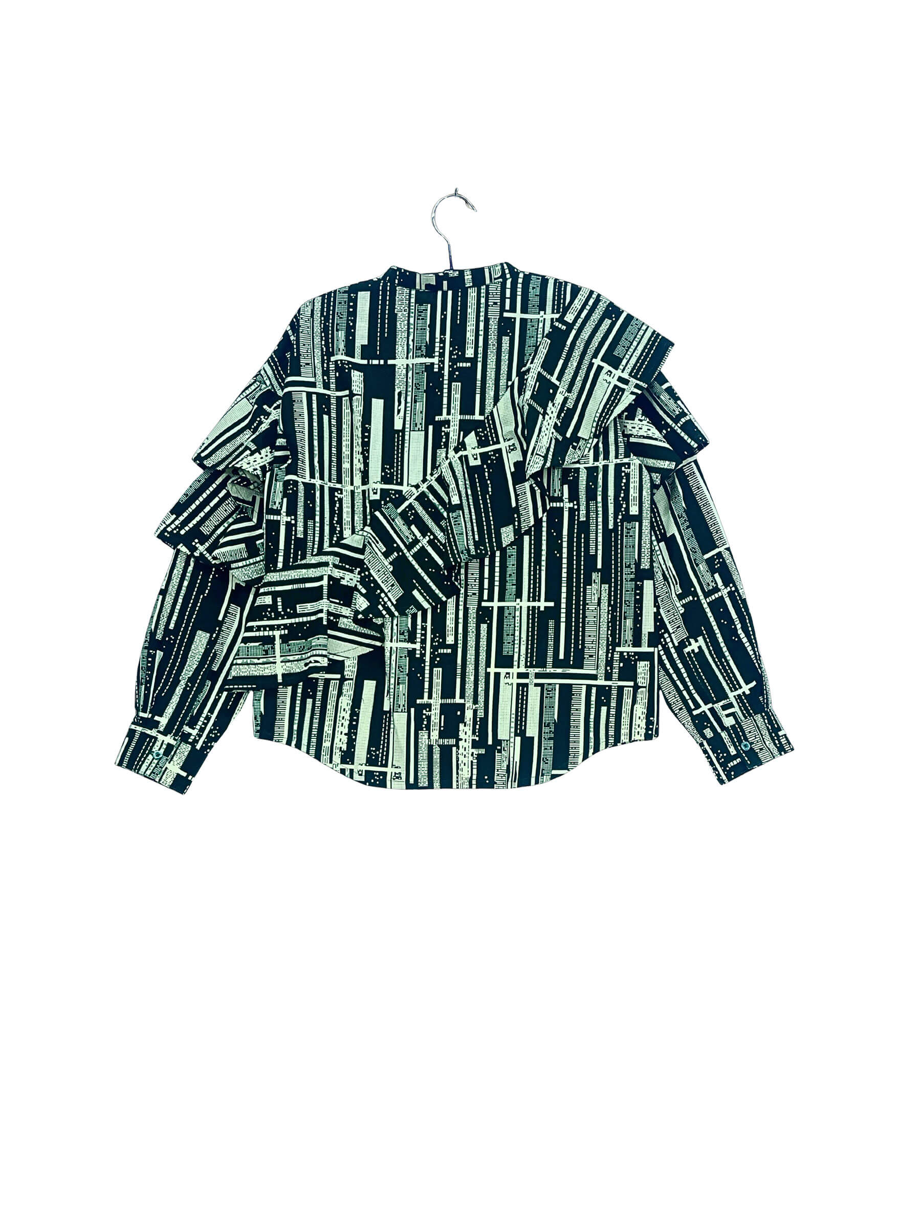 This year’s long-sleeve shirt is a standout piece with asymmetrical layered ruffles, making it a luxurious, statement-making top. Pair it with pants or denim for an effortlessly chic look, perfect for any occasion. Wear it open-front as a lightweight jacket for a fresh, stylish vibe. You’ll want it in every color—this is the top pick for fall and winter!