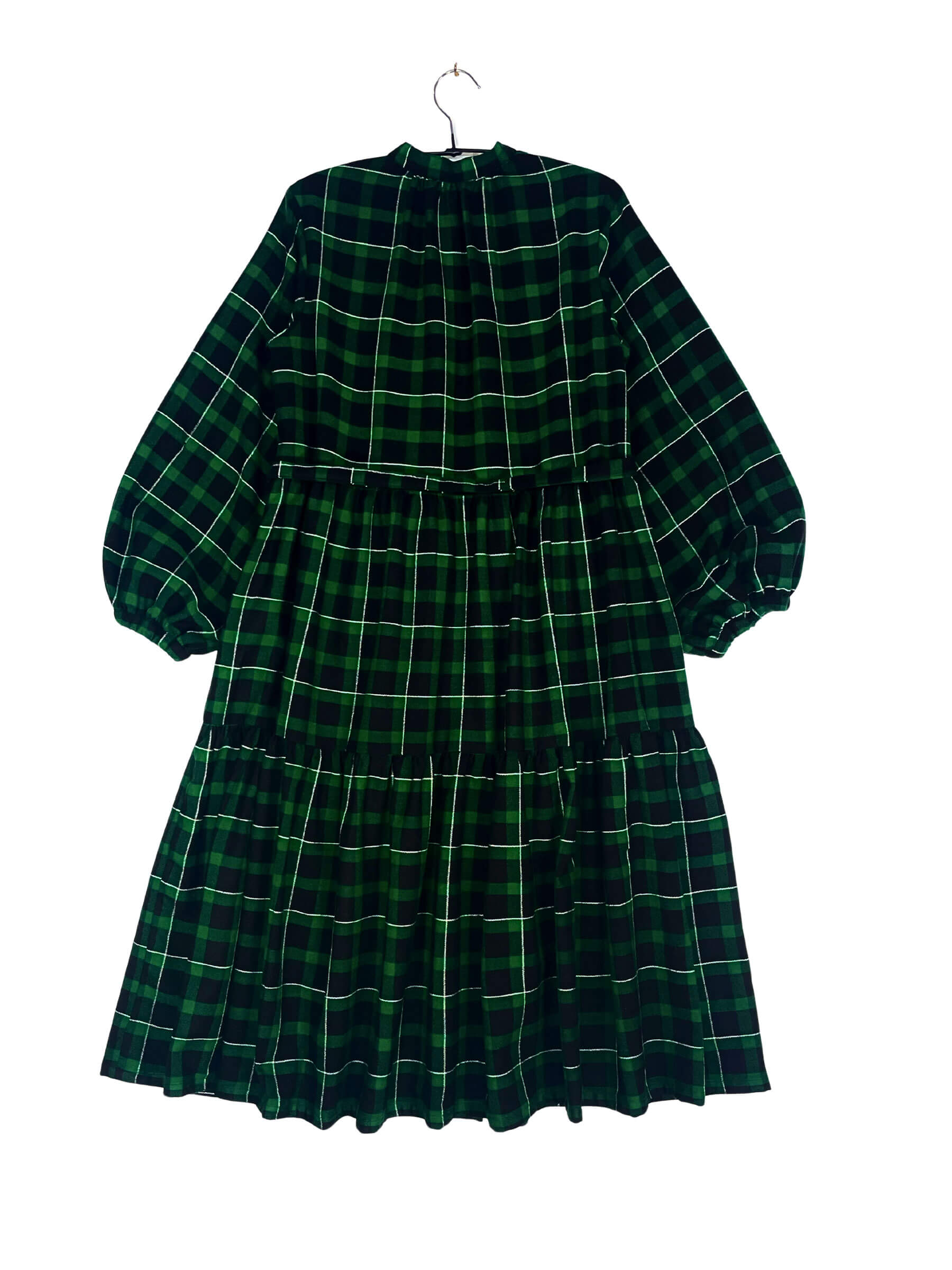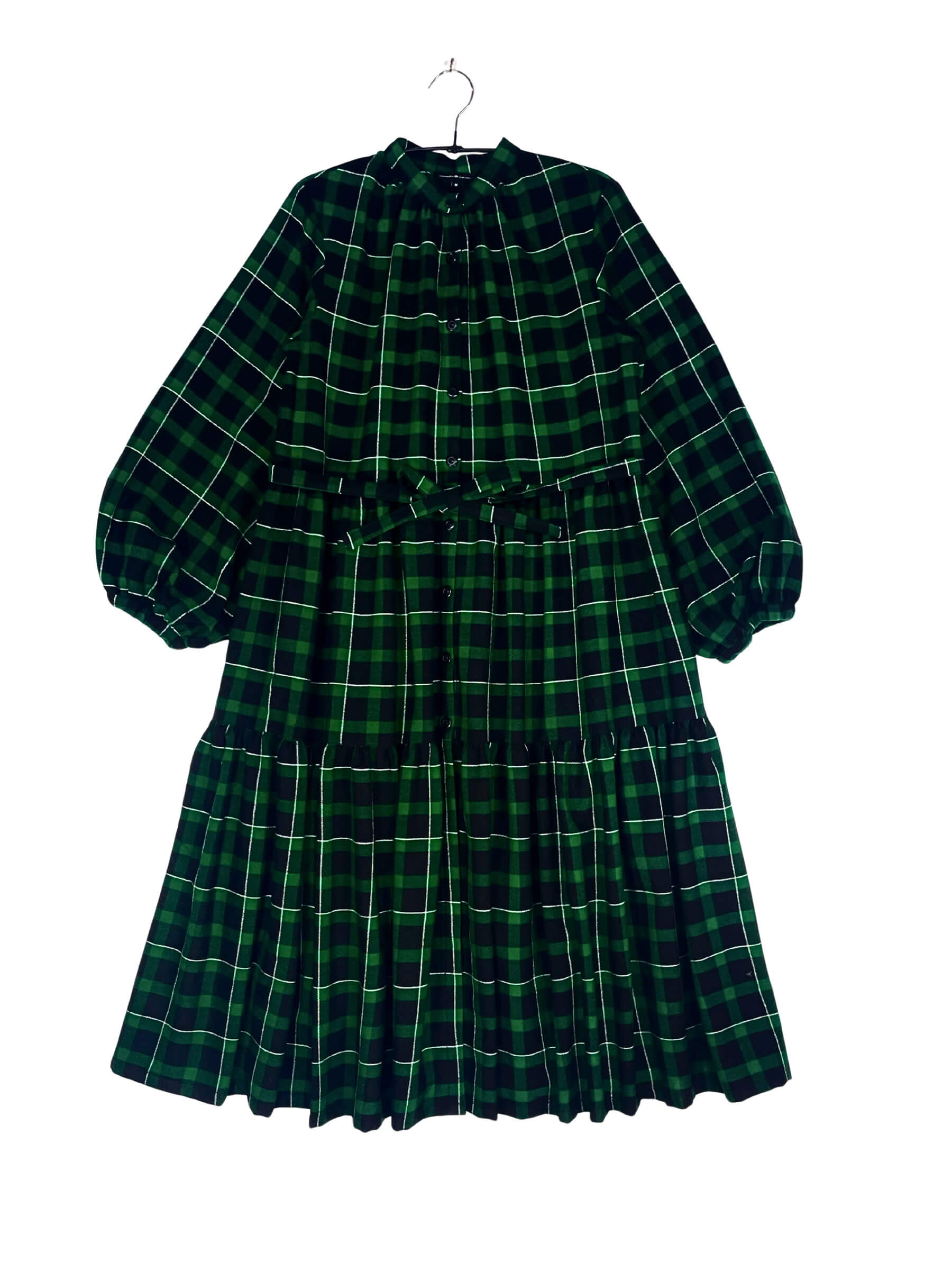 This winter's new dress is a shirt dress made of warm, light blankets, Maasai Shuka. With plenty of gathers from the top to the bottom layers, the loose A-line silhouette is relaxed enough to layer other clothes and is perfect for the cold winter. You can choose a length from short (over knee) or long (ankle). It can be worn as a cardigan as well. A waist ribbon attahced.