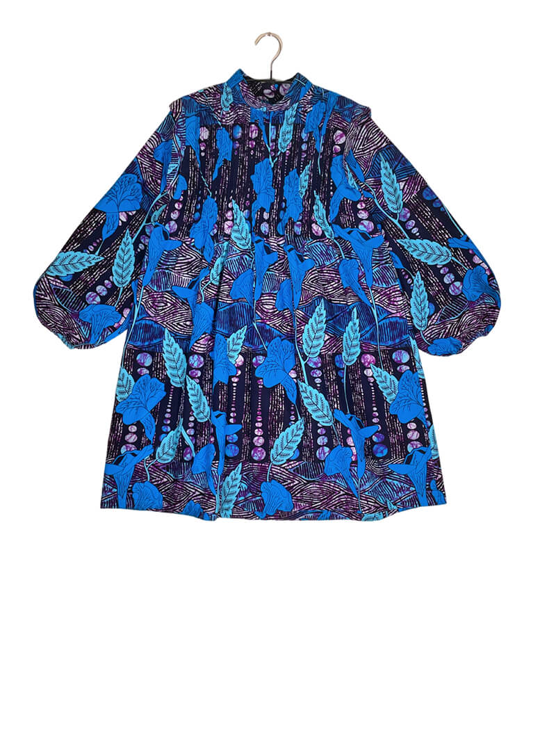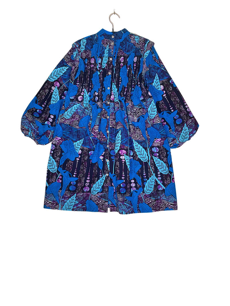 Over 30 pintuck lines on each side, shoulder tuck design. Balloon sleeves & elastic cuff. High neck collar, back button design.
