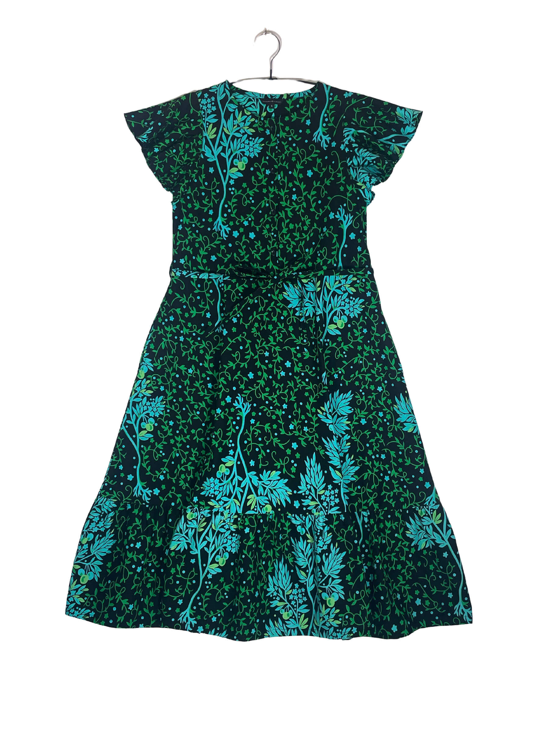 This summer's new dress features a clean-cut silhouette and ruffled sleeves that flutter in the wind, making it a gorgeous piece that is easy to wear even in the hot season. The round neck and the less voluminous skirt make it light to wear. It has a sleeveless design, yet the ruffles are just the right amount to cover the arms. A new summer staple that beats the heat!