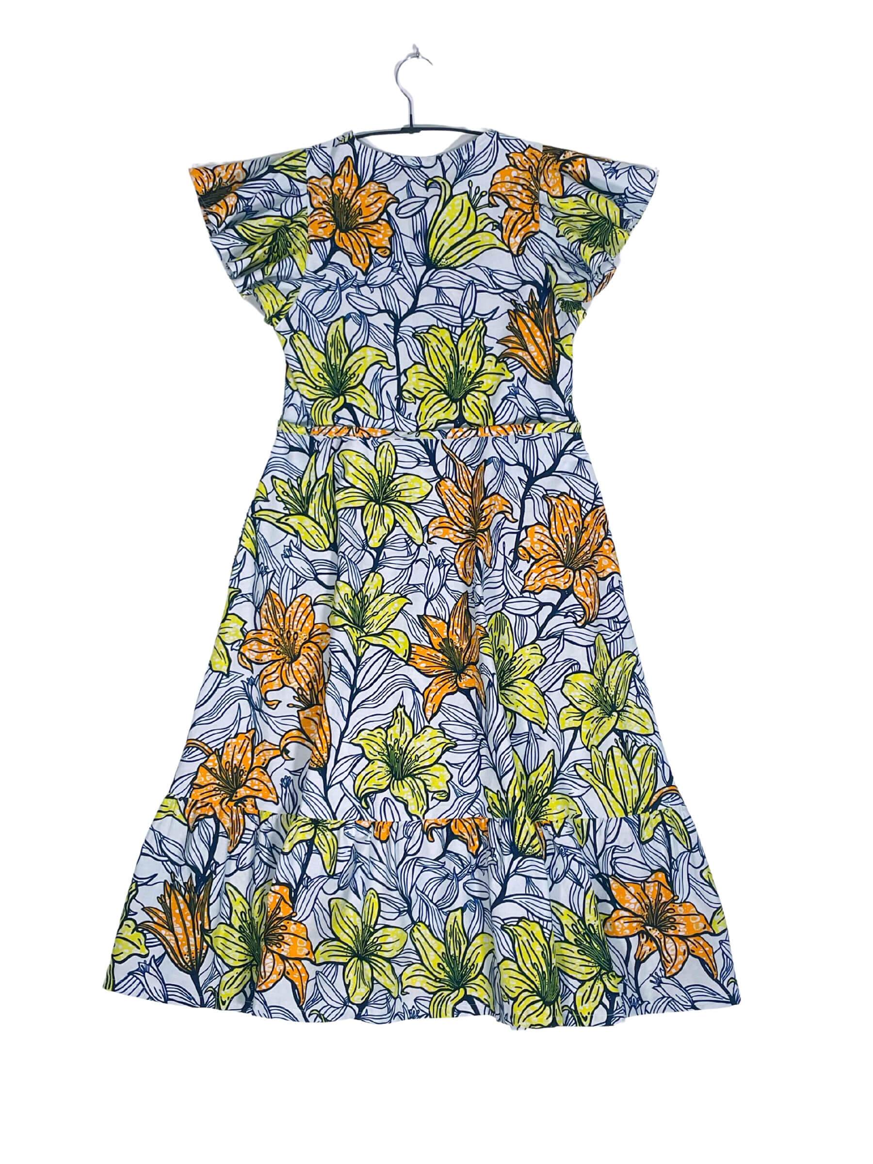 This summer's new dress features a clean-cut silhouette and ruffled sleeves that flutter in the wind, making it a gorgeous piece that is easy to wear even in the hot season. The round neck and the less voluminous skirt make it light to wear. It has a sleeveless design, yet the ruffles are just the right amount to cover the arms. A new summer staple that beats the heat!