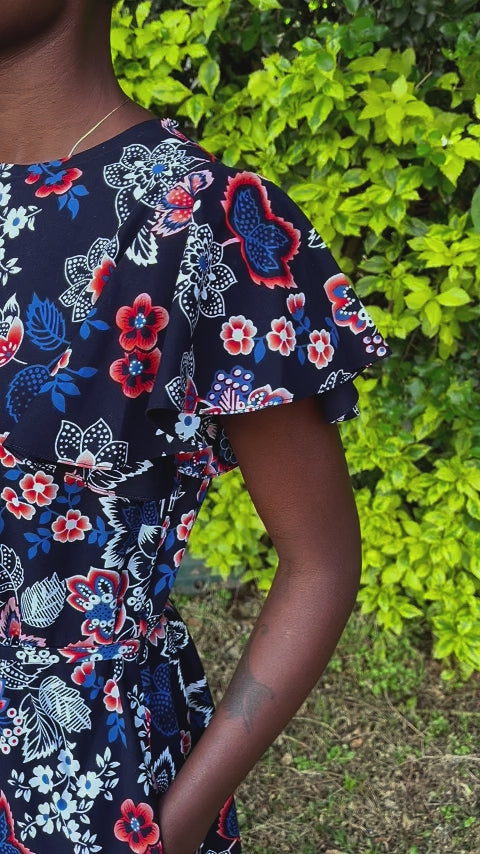 This summer's new dress features a clean-cut silhouette and ruffled sleeves that flutter in the wind, making it a gorgeous piece that is easy to wear even in the hot season. The round neck and the less voluminous skirt make it light to wear. It has a sleeveless design, yet the ruffles are just the right amount to cover the arms. A new summer staple that beats the heat!