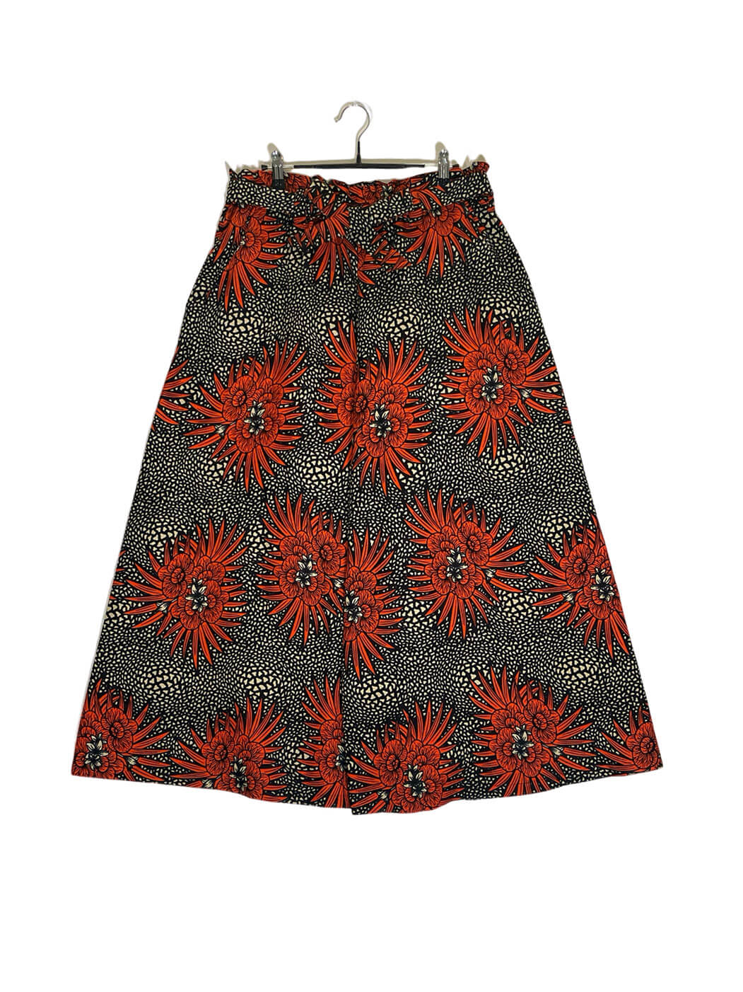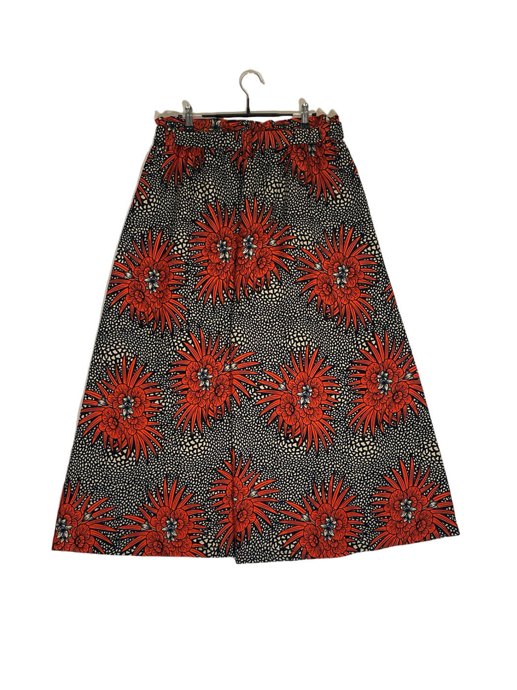 Skirt + pants = Skants! It looks like a maxi skirt, yet it's a pair of pants. It has a high waist design, the waist part is elastic and can be adjusted with a ribbon.