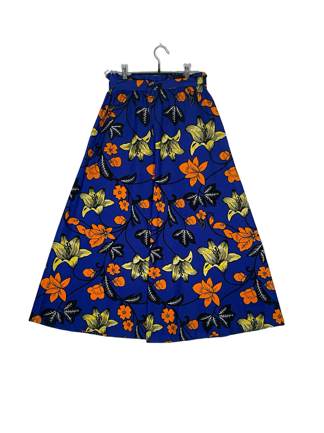 Skirt + pants = Skants! It looks like a maxi skirt, yet it's a pair of pants. It has a high waist design, the waist part is elastic and can be adjusted with a ribbon.