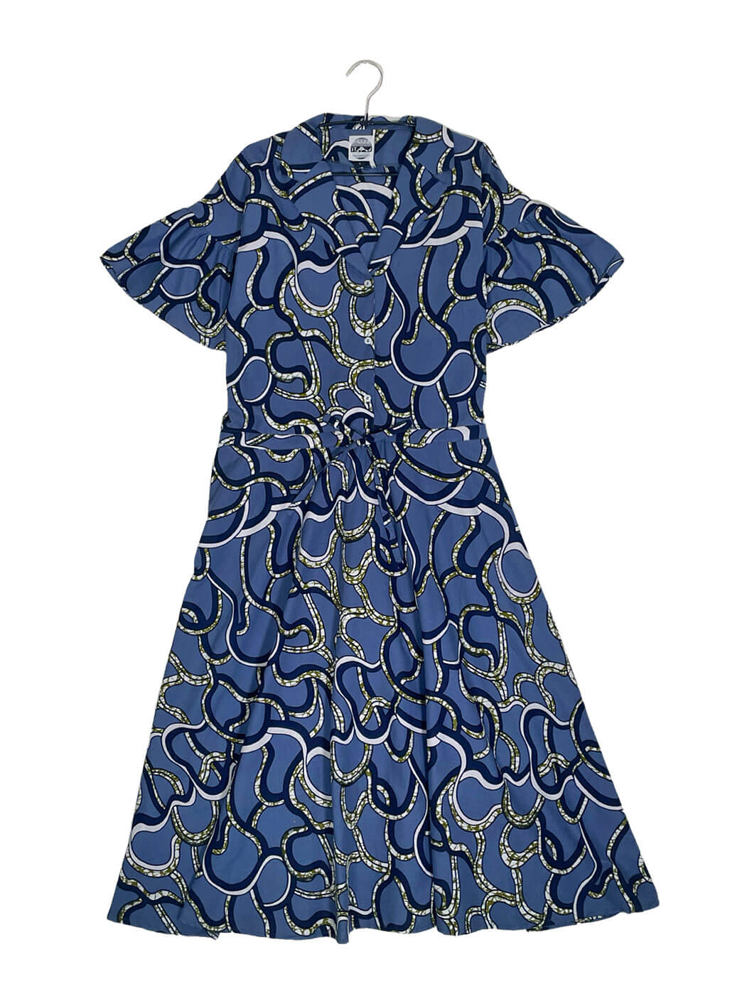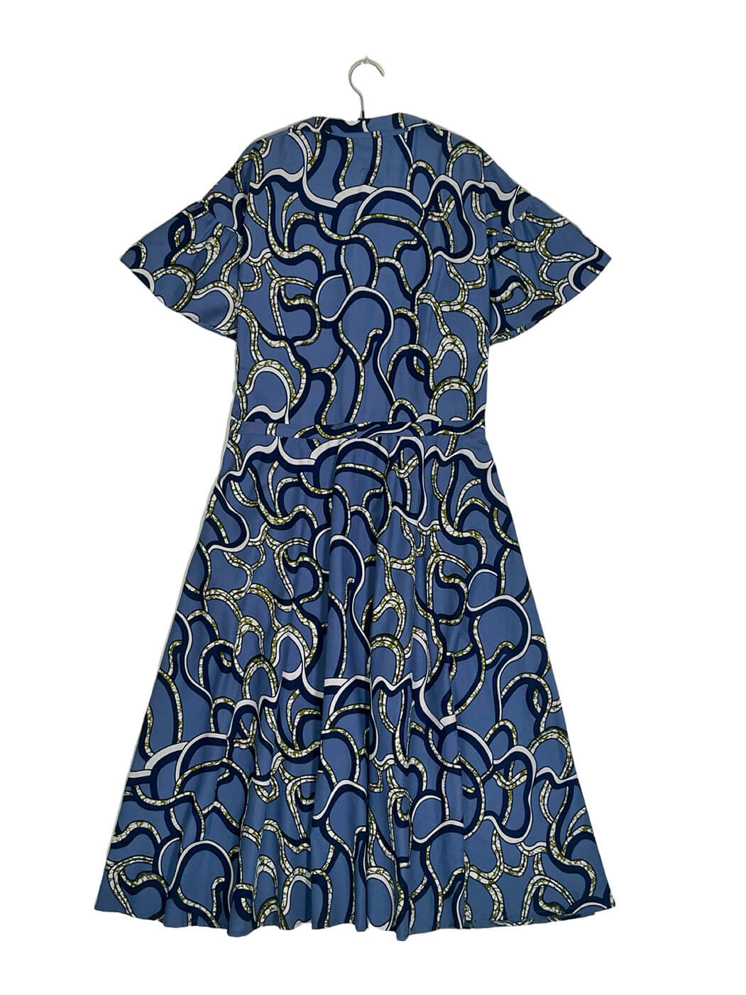 The tailored collar and flared skirt give a classic vibe. The top has a front button design, you can open the buttons and wear it with a camisole or other inner layer. The lower waist ribbon position and maxi length combination create a retro silhouette. When you raise the ribbon to the waist position and squeeze it, it will look like a two-piece outfit.