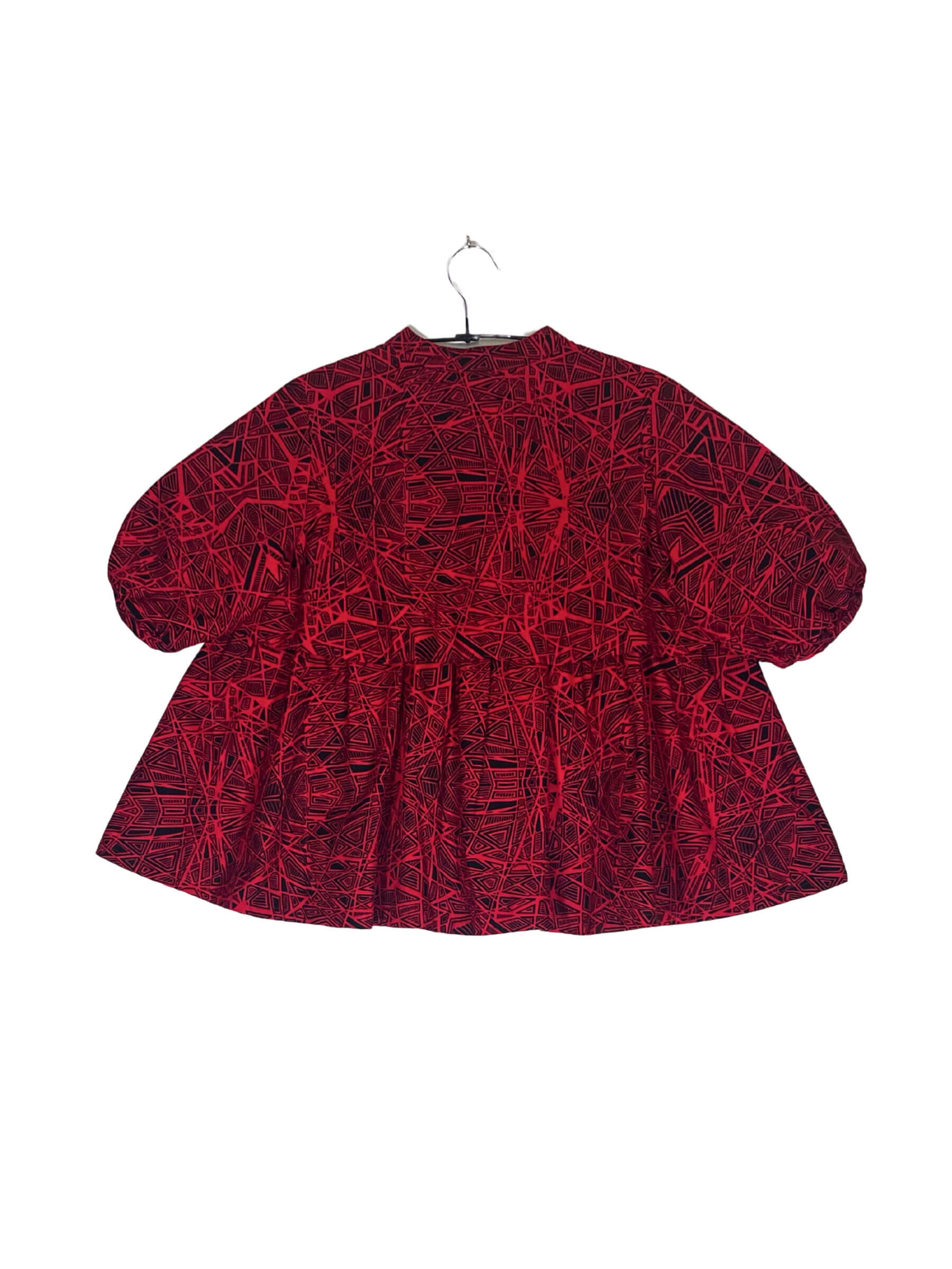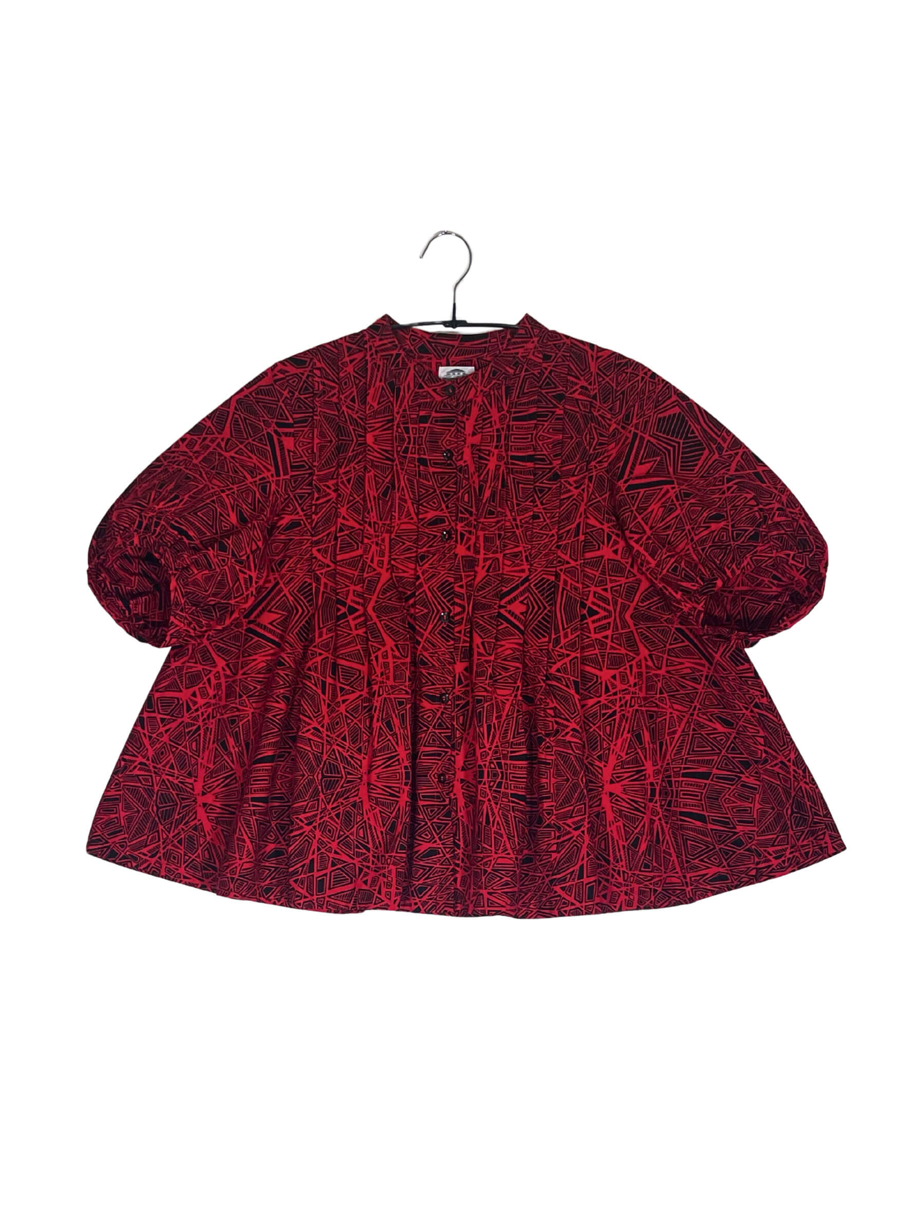 Our very first women's shirt has this fluffy A-line silhouette and voluminous sleeves, it gives a feminine impression. There are 10 pin tucks on the chest. The rounded, seashell-like sleeves are not only cute but also cover your upper arms perfectly. This oversized band collar shirt is easy to balance with your everyday outfits, gives a trendy look with any pants style, and can also be worn as a short cardigan.