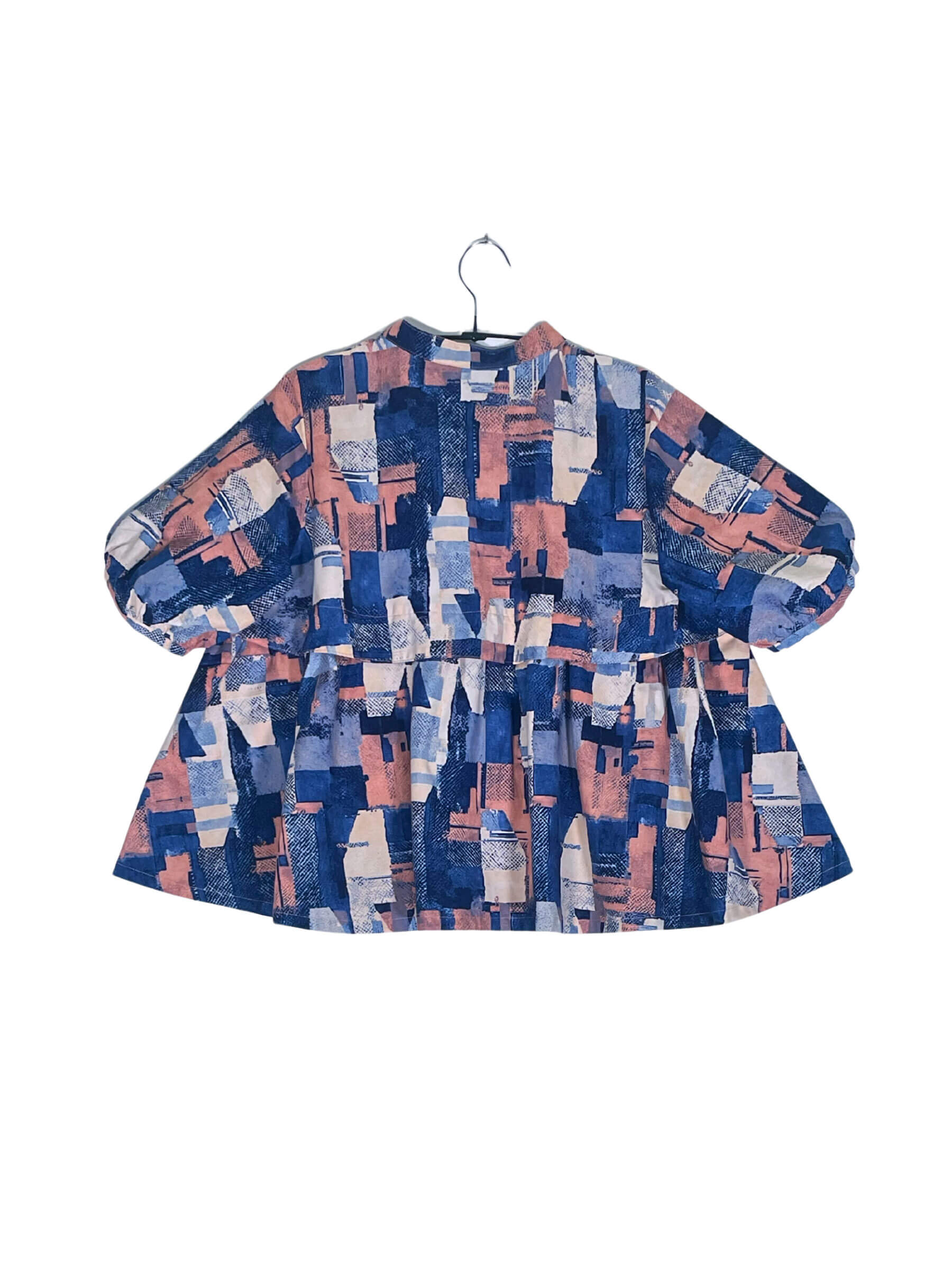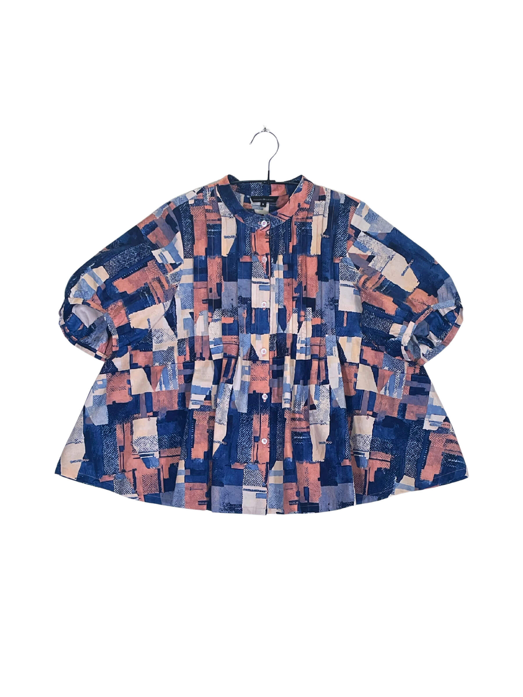 Our very first women's shirt has this fluffy A-line silhouette and voluminous sleeves, it gives a feminine impression. There are 10 pin tucks on the chest. The rounded, seashell-like sleeves are not only cute but also cover your upper arms perfectly. This oversized band collar shirt is easy to balance with your everyday outfits, gives a trendy look with any pants style, and can also be worn as a short cardigan.