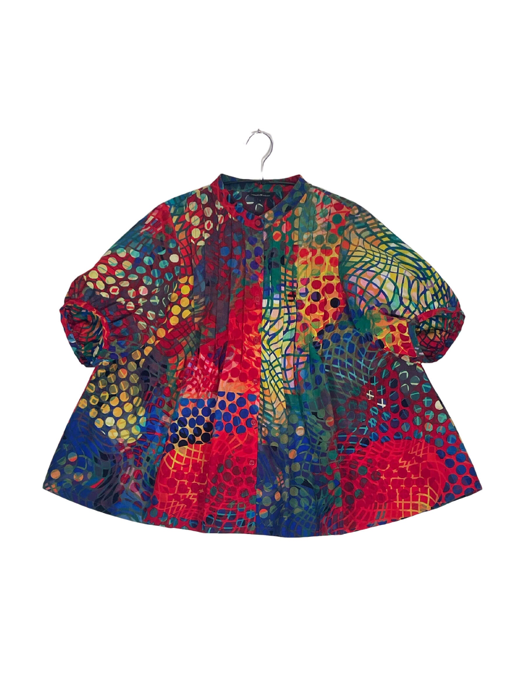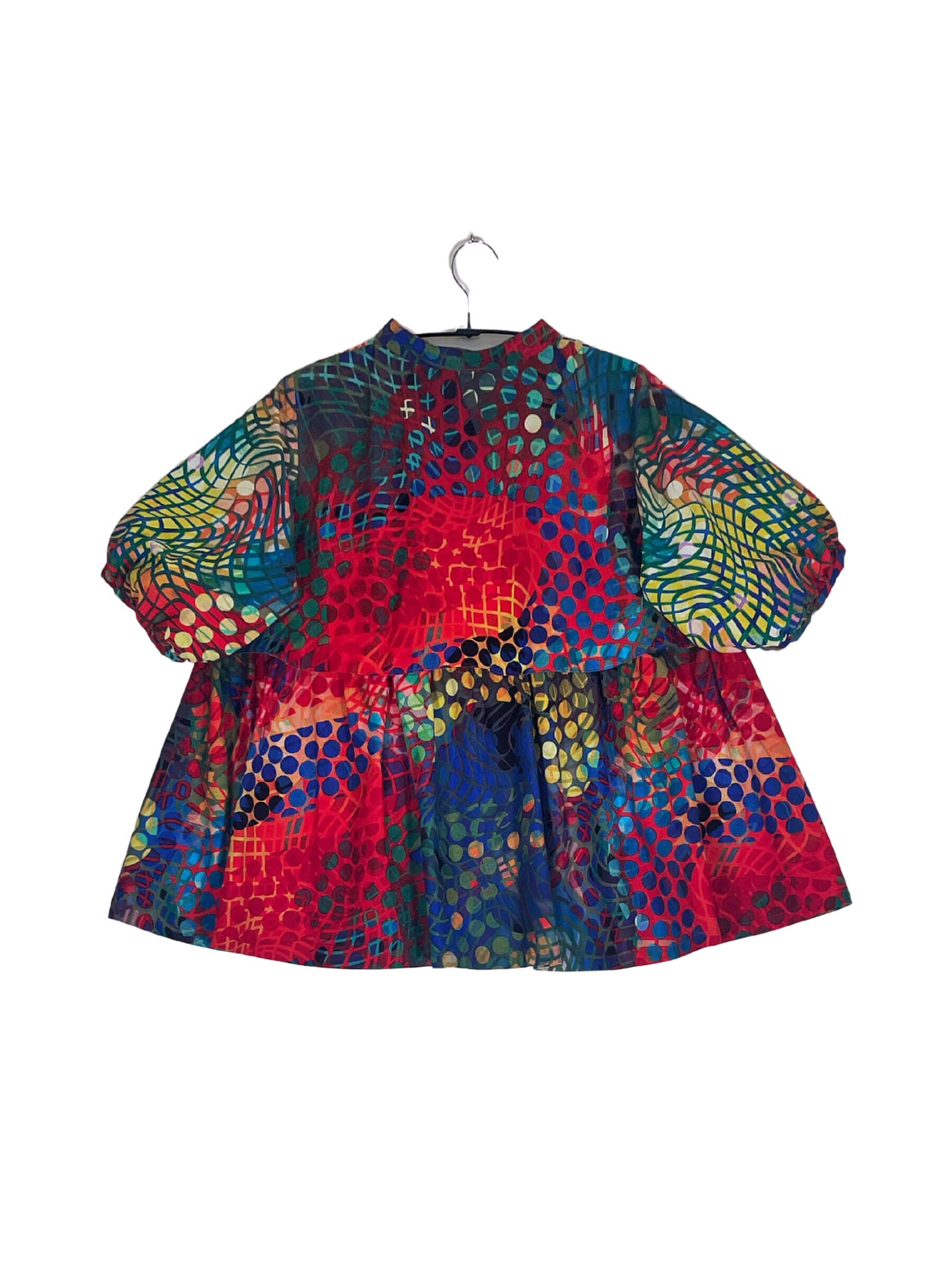 Our very first women's shirt has this fluffy A-line silhouette and voluminous sleeves, it gives a feminine impression. There are 10 pin tucks on the chest. The rounded, seashell-like sleeves are not only cute but also cover your upper arms perfectly. This oversized band collar shirt is easy to balance with your everyday outfits, gives a trendy look with any pants style, and can also be worn as a short cardigan.